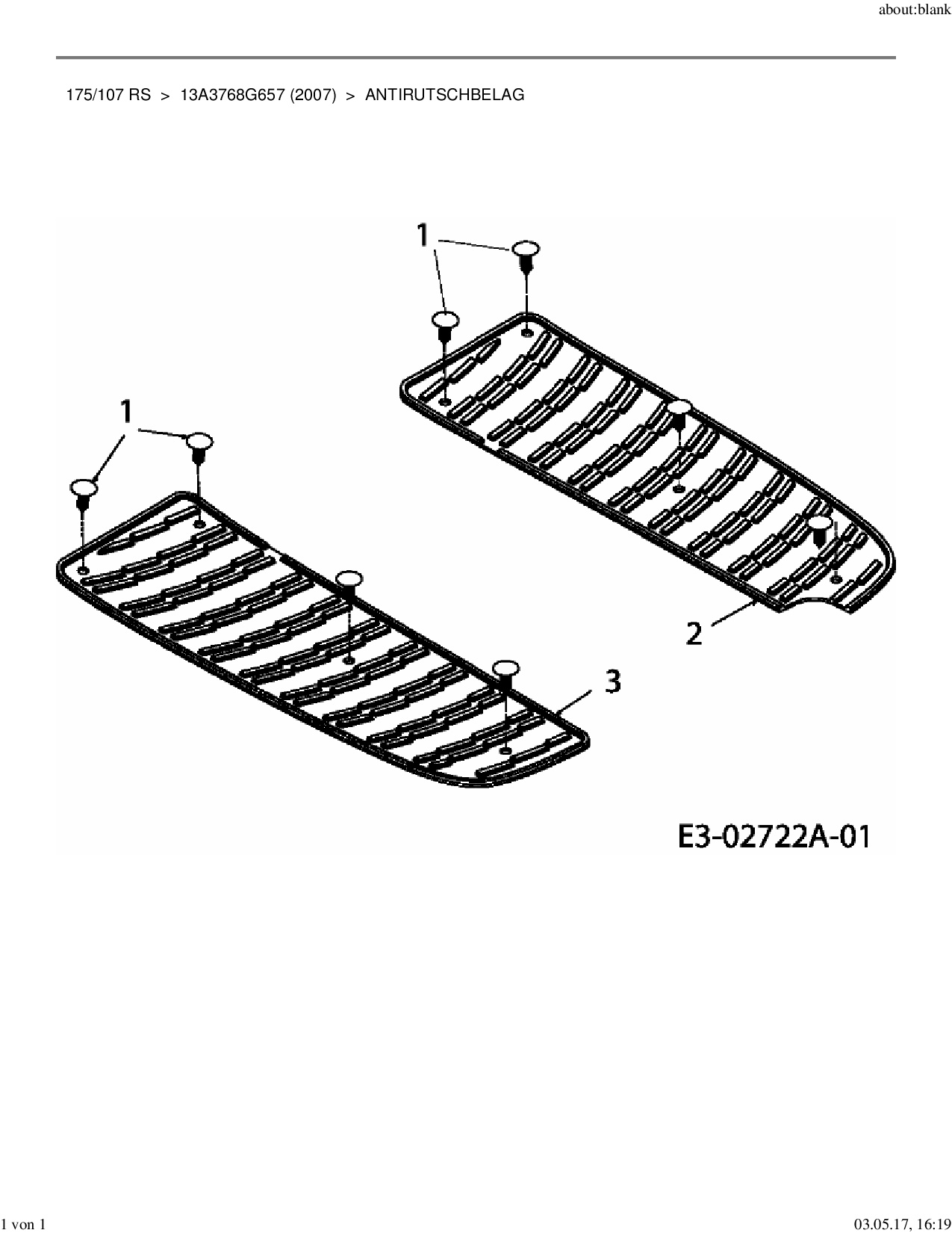 Ersatzteile für Rasentraktor Mastercut 175/107 RS aus der Zeichnung Antirutschbelag:
