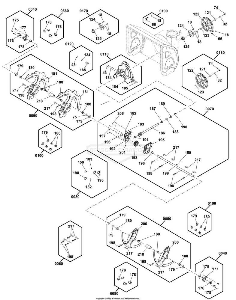 Hier finden Sie alle Ersatzteile von Murray Schneefräse 1696614-04 - S1024, B&S 9.5 Gross TP 24" Dual Stage Snowthrower (2019) der Zeichnungsgruppe Antrieb Fräse: