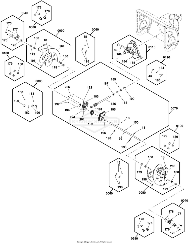 Hier finden Sie alle Ersatzteile von Murray Schneefräse 1696619-05 - S1227, B&S 11.5 Gross TP 27" Dual Stage Snowthrower (2019) der Zeichnungsgruppe Antrieb Fräse: