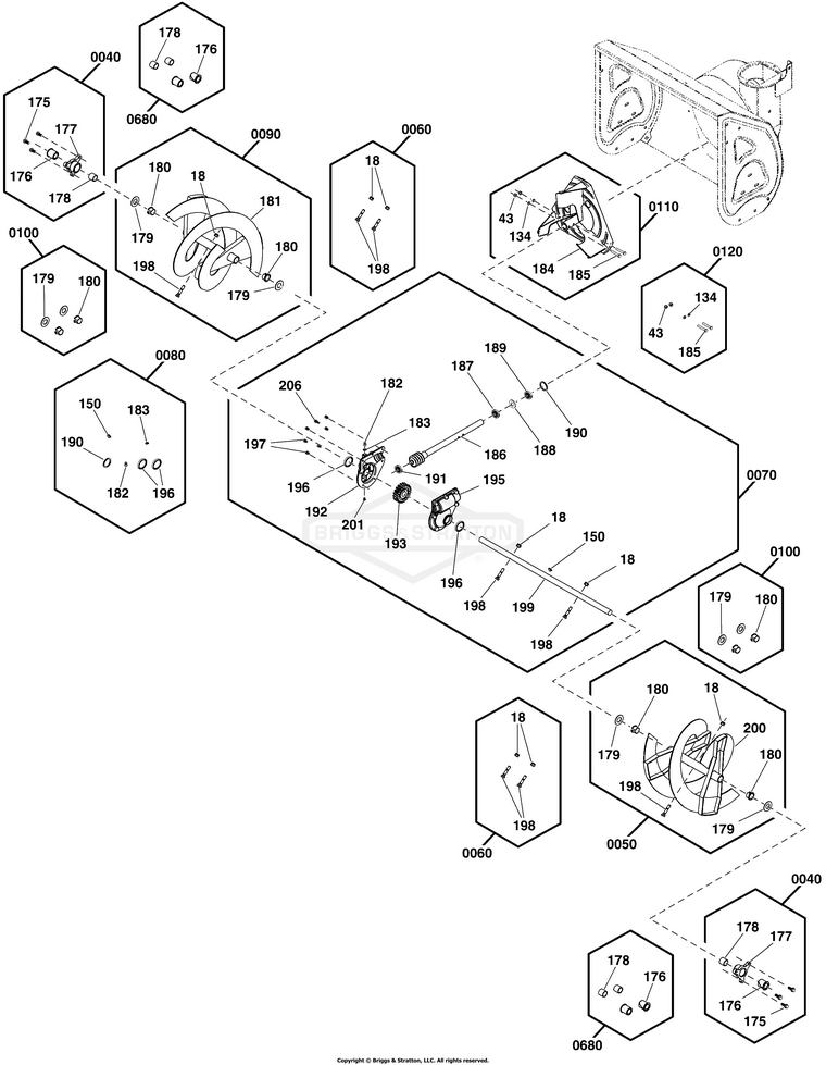 Hier finden Sie alle Ersatzteile von Murray Schneefräse 1696614-02 - 1024MD, B&S 9.5 Gross TP 24" Dual Stage Snowthrower (2018) der Zeichnungsgruppe Antrieb Fräse: