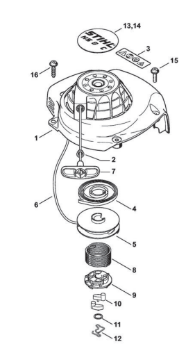 Hier finden Sie alle Ersatzteile von Stihl Heckenscheren HS 81 TC-E der Zeichnungsgruppe Anwerfvorrichtung ErgoStart: