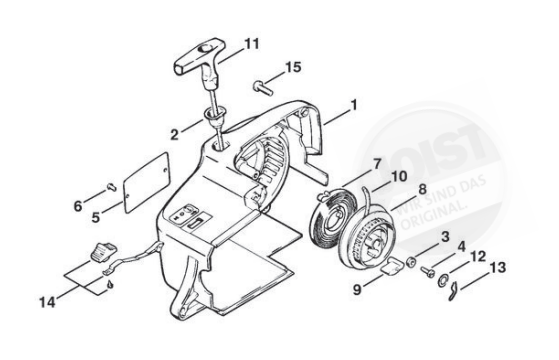 Hier finden Sie alle Ersatzteile von Stihl Benzin-Motorsägen 011 der Zeichnungsgruppe Anwerfvorrichtung: