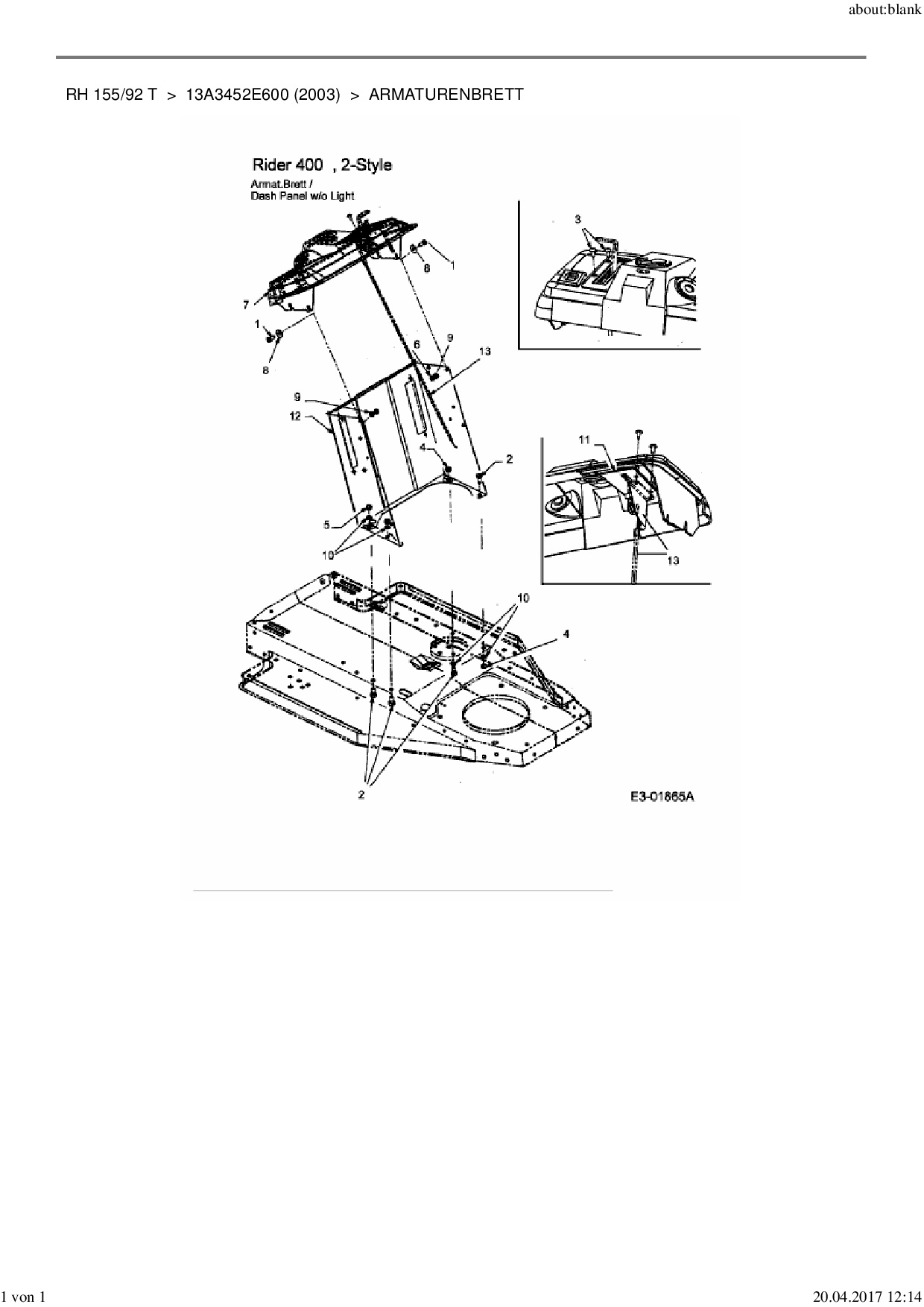 Ersatzteile für Rasentraktor MTD RH 155/92 T aus der Zeichnung Armaturenbrett 1: