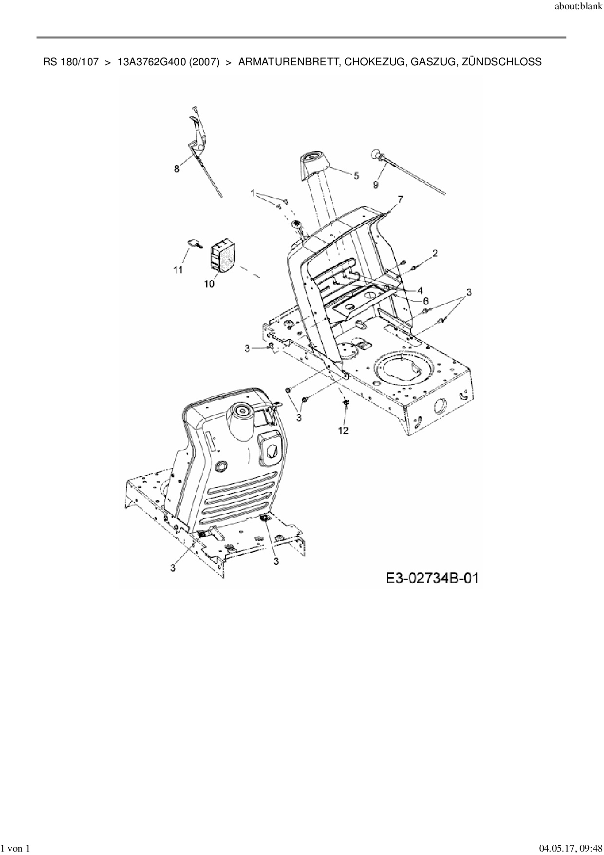 Ersatzteile für Rasentraktor MTD RS 180/107 aus der Zeichnung Armaturenbrett, Chokezug, Gaszug, Zündschloss: