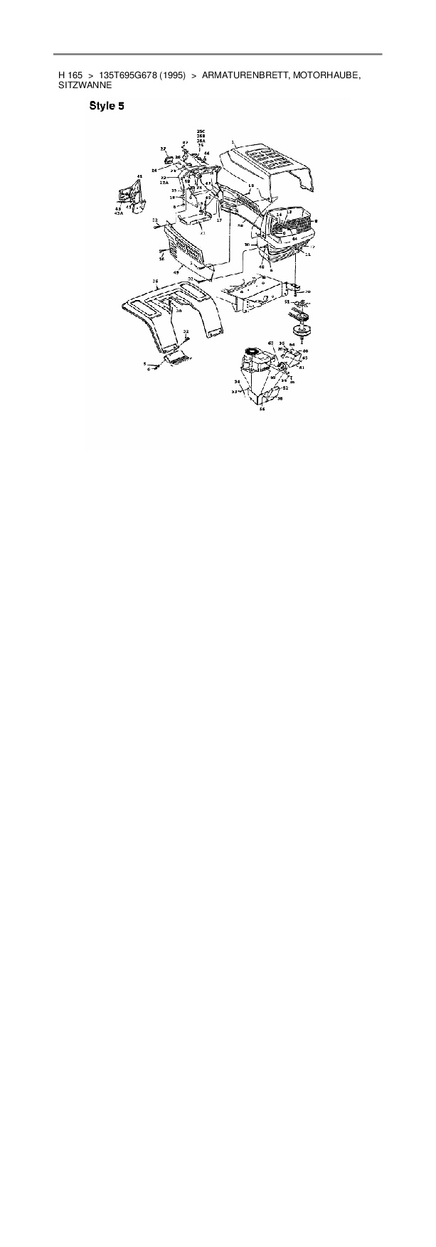 Download Ersatzteil-Zeichnung MTD H 165 Zeichnung Armaturenbrett, Motorhaube, Sitzwanne (PDF-Format)