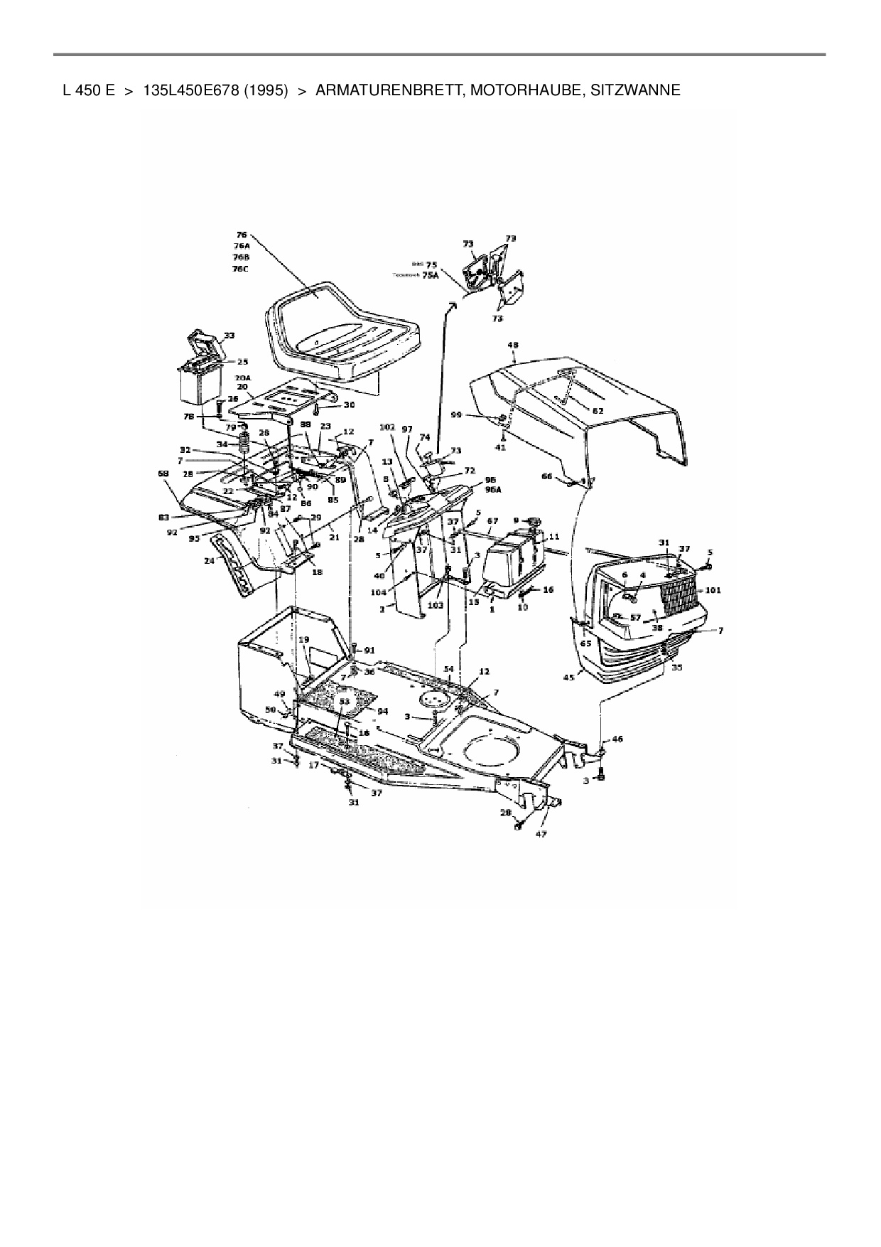 Download Ersatzteil-Zeichnung MTD L 450 E Zeichnung Armaturenbrett, Motorhaube, Sitzwanne (PDF-Format)