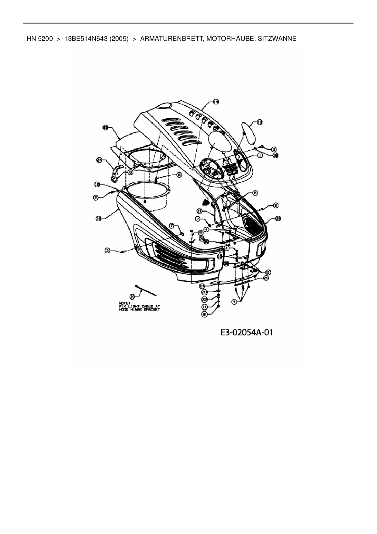 Download Ersatzteil-Zeichnung Yard-Man HN 5200 Zeichnung Armaturenbrett, Motorhaube, Sitzwanne (JPG-Format)