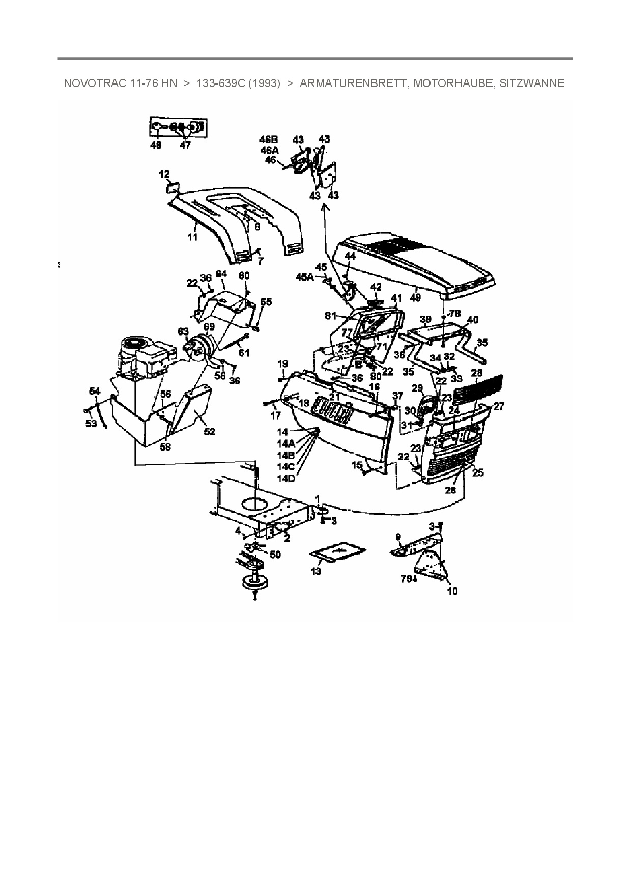 Ersatzteile für Rasentraktor Novotrac NOVOTRAC 11-76 HN aus der Zeichnung Armaturenbrett, Motorhaube, Sitzwanne: