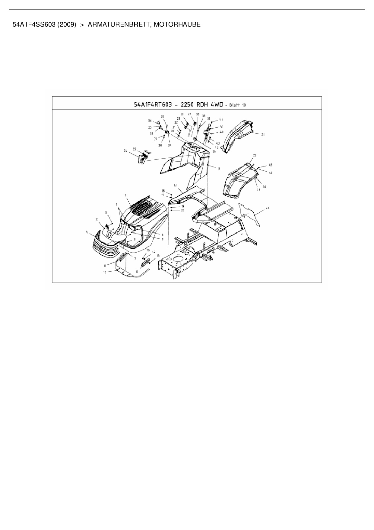 Download Ersatzteil-Zeichnung Cub Cadet CC 2000 RD 4 WD Zeichnung Armaturenbrett, Motorhaube (PDF-Format)
