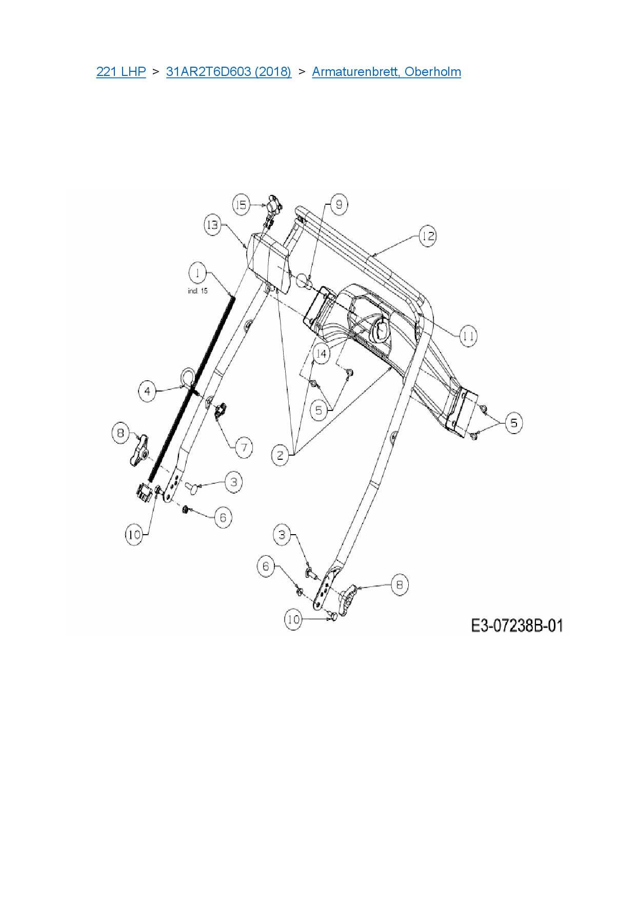 Ersatzteile für Schneefräse Cub Cadet 221 LHP aus der Zeichnung Armaturenbrett, Oberholm: