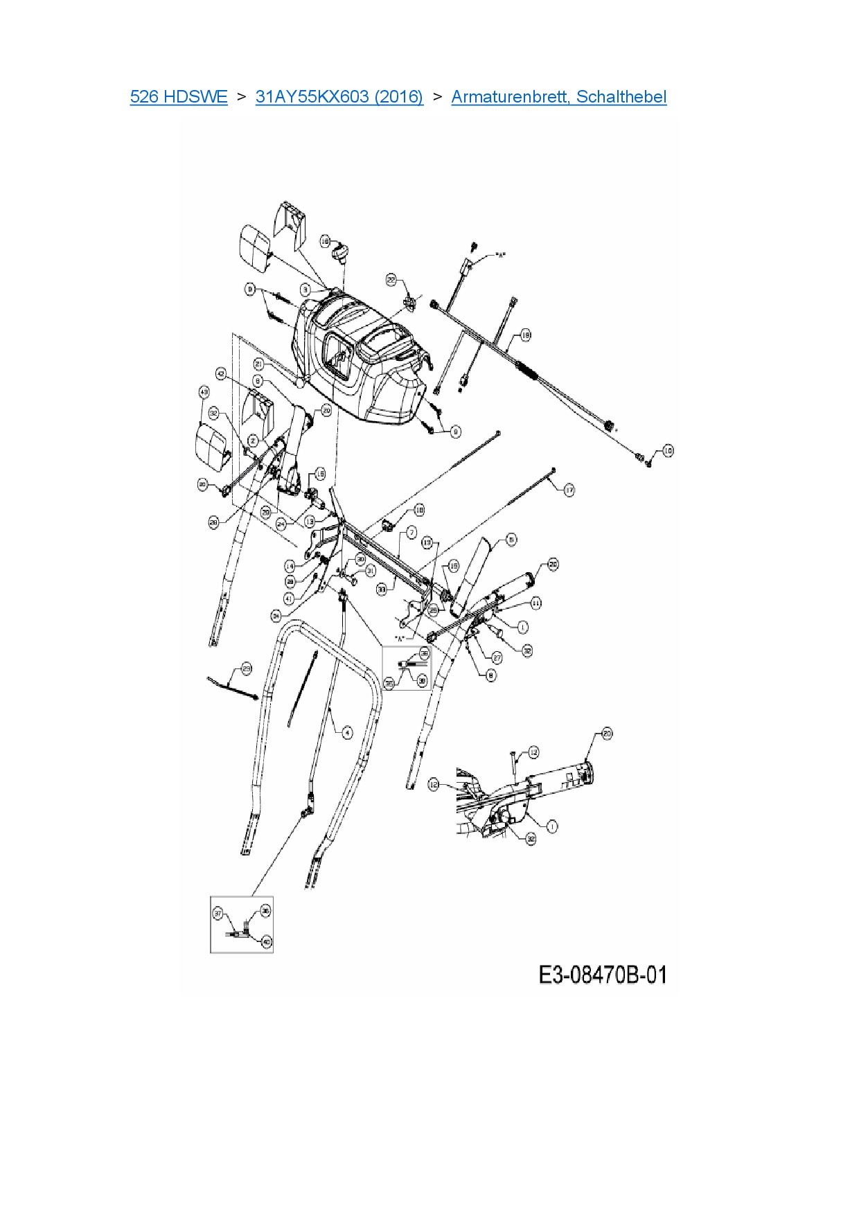 Ersatzteile für Schneefräse Cub Cadet 526 HDSWE aus der Zeichnung Armaturenbrett, Schalthebel:
