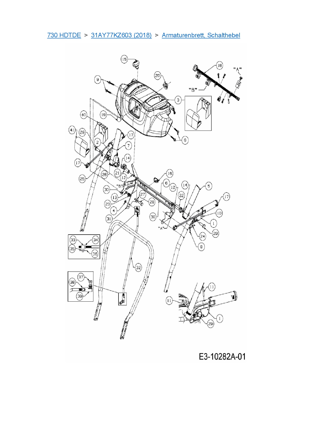 Zeichnung für Cub Cadet Schneefräse 730 HDTDE mit der Geräte-Artikelnr. 31AY77KZ603 ab Baujahr 2018: