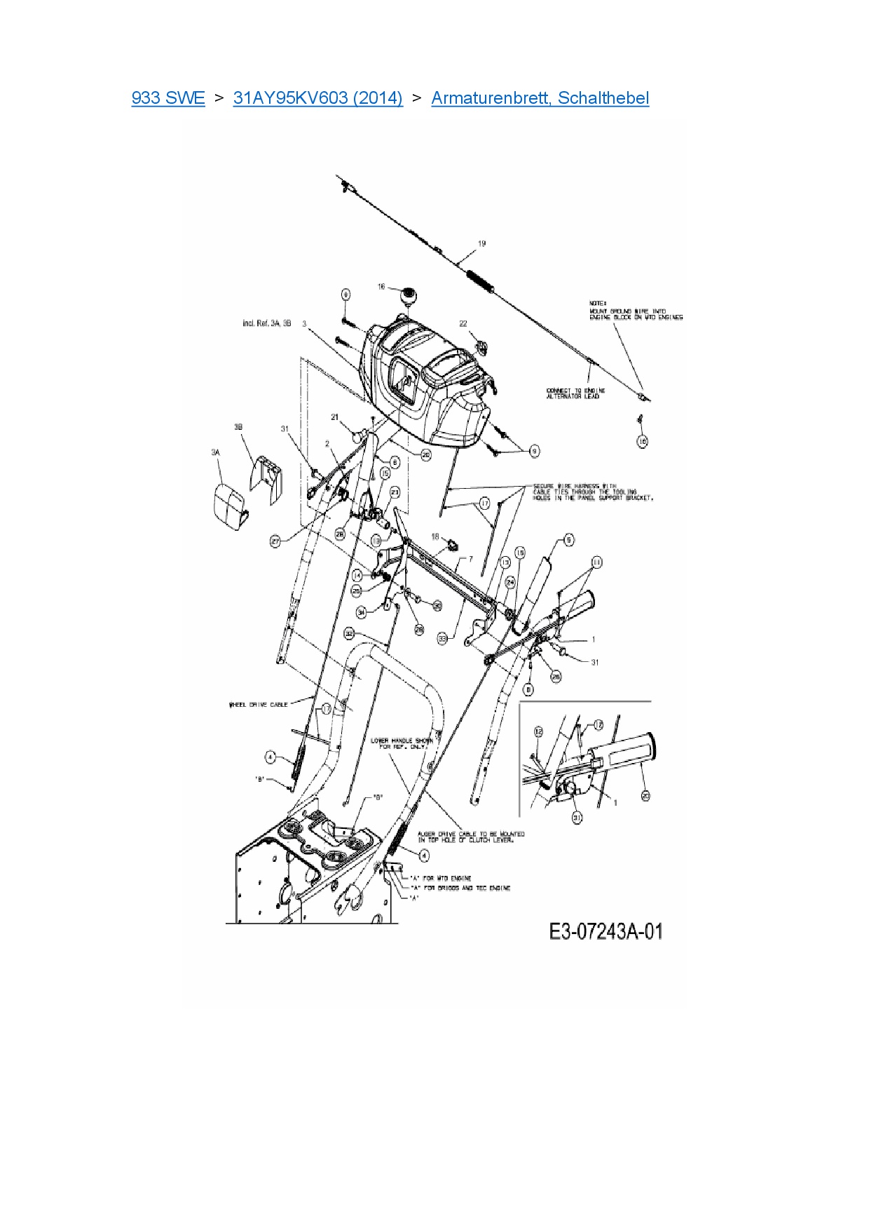 Ersatzteile für Schneefräse Cub Cadet 933 SWE aus der Zeichnung Armaturenbrett, Schalthebel: