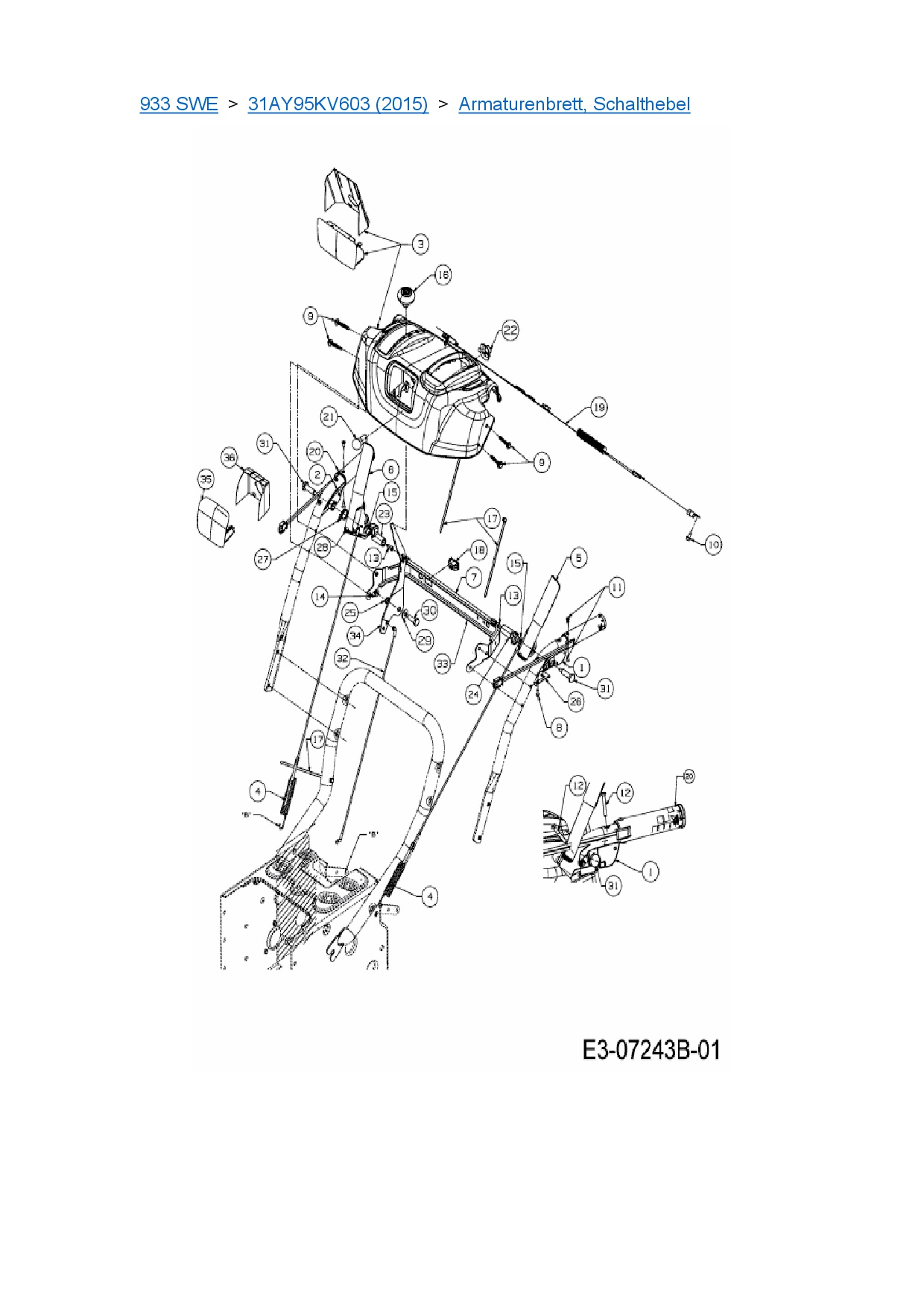 Zeichnung für Cub Cadet Schneefräse 933 SWE mit der Geräte-Artikelnr. 31AY95KV603 ab Baujahr 2015: