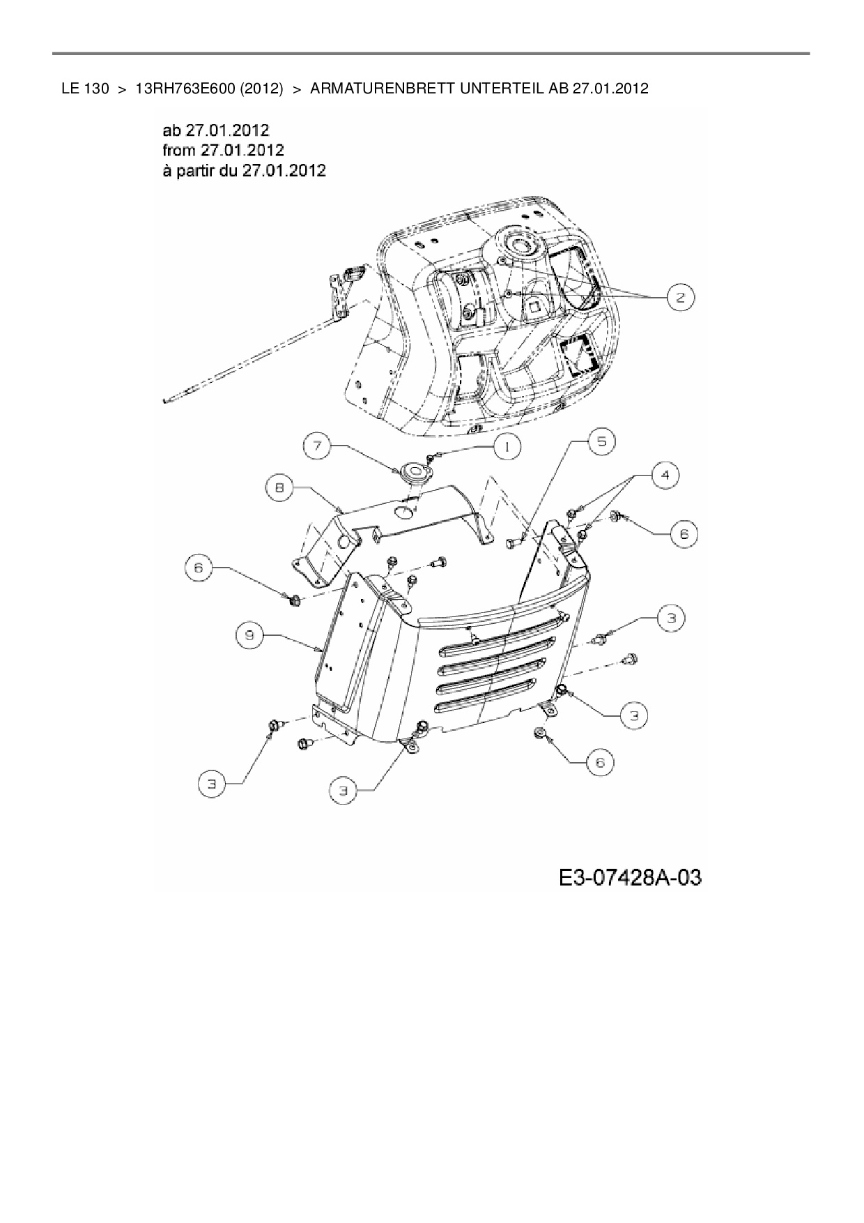Ersatzteile für Rasentraktor MTD LE 130 aus der Zeichnung Armaturenbrett Unterteil ab 27.01.2012: