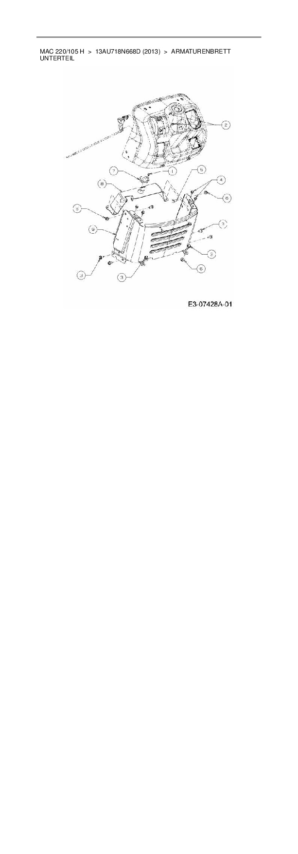 Ersatzteile für Rasentraktor Mac Allister Mac 220/105 H aus der Zeichnung Armaturenbrett Unterteil: