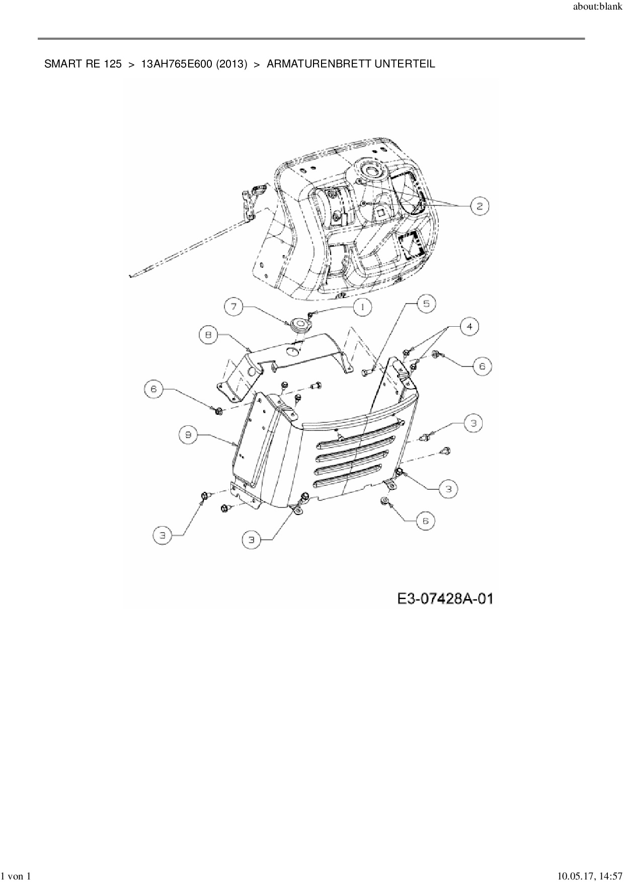 Ersatzteile für Rasentraktor MTD Smart RE 125 aus der Zeichnung Armaturenbrett Unterteil: