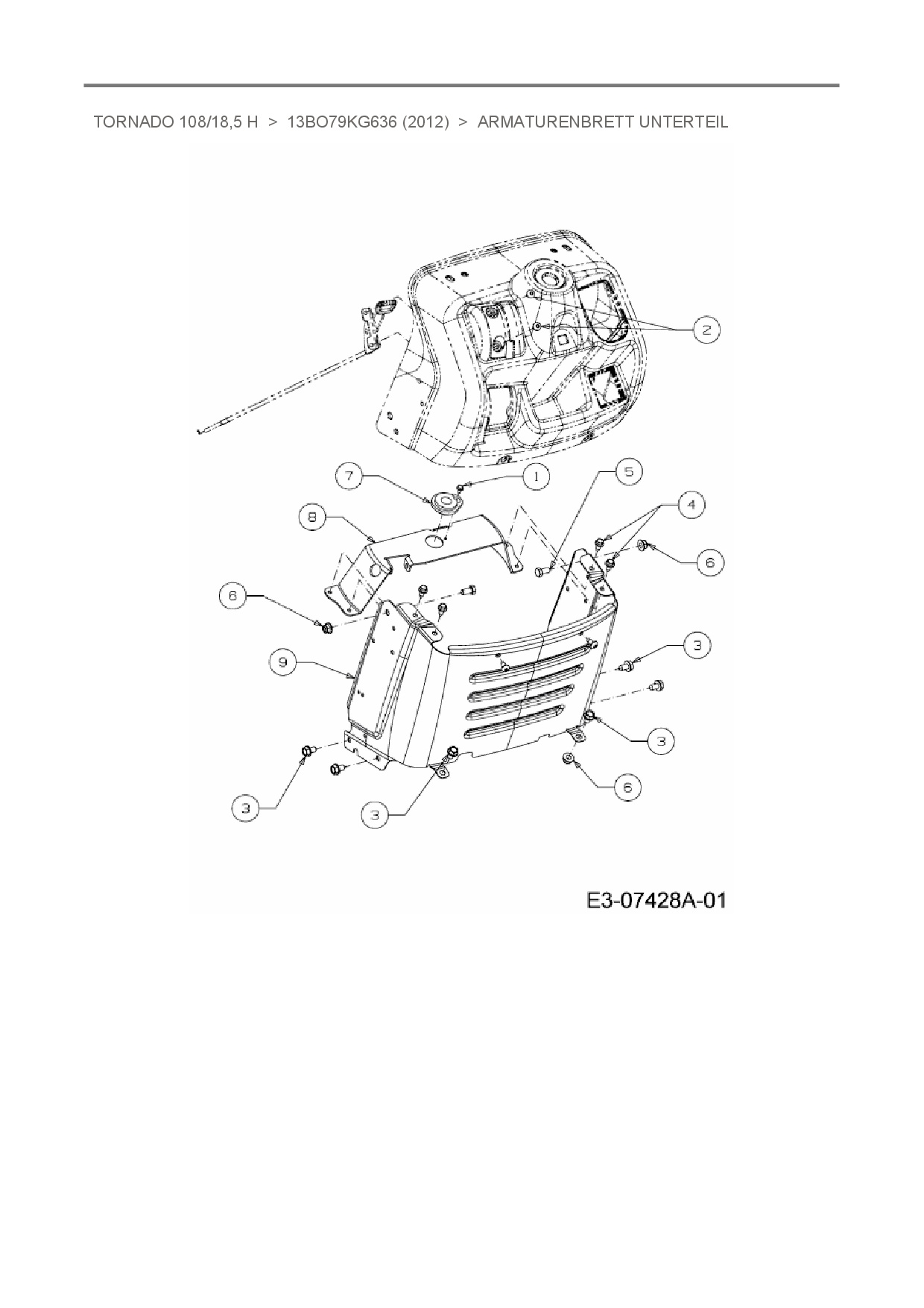 Ersatzteile für Rasentraktor Oleo-Mac Tornado 108/18,5 H aus der Zeichnung Armaturenbrett Unterteil: