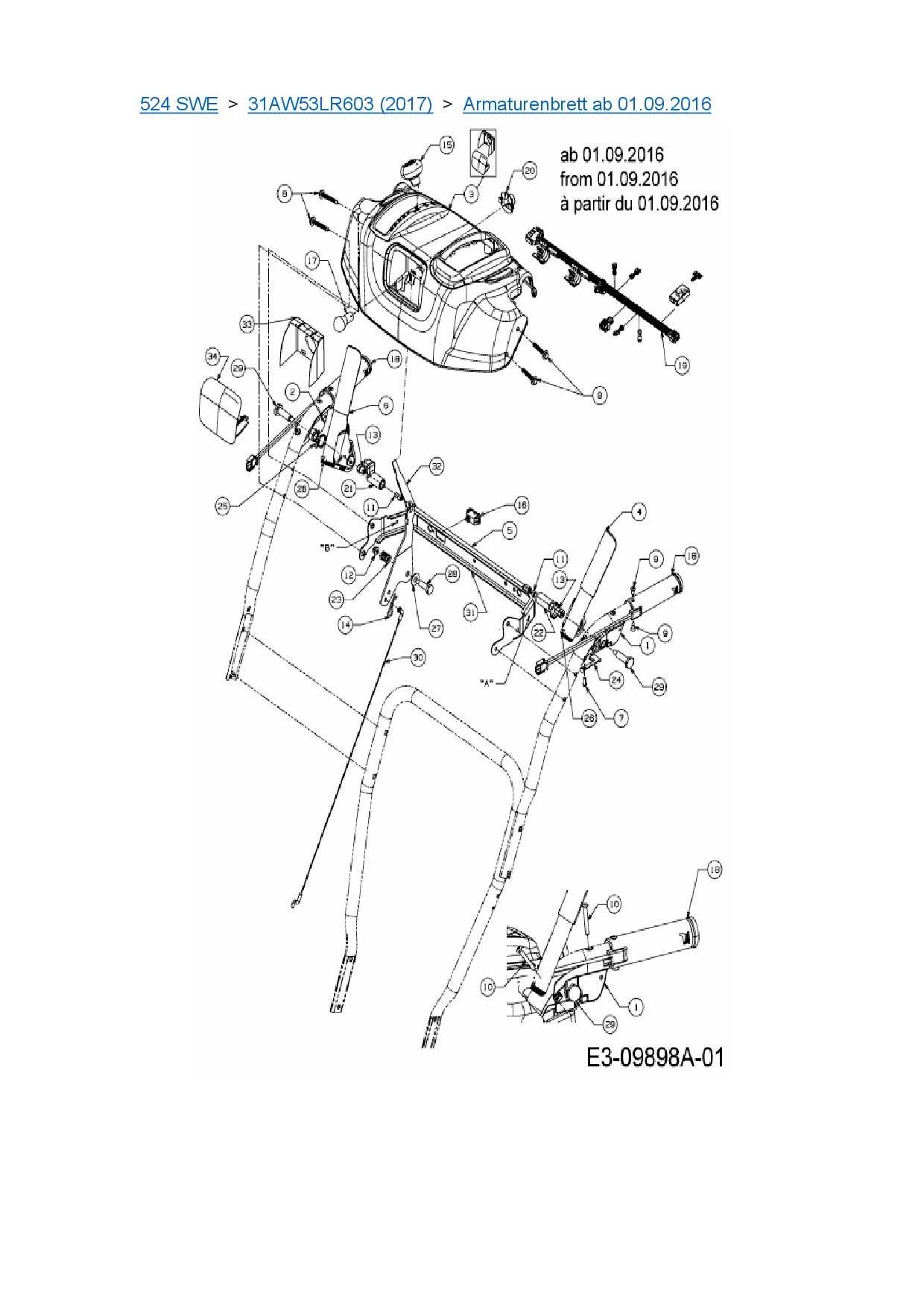 Ersatzteile für Schneefräse Cub Cadet 524 SWE aus der Zeichnung Armaturenbrett ab 01.09.2016: