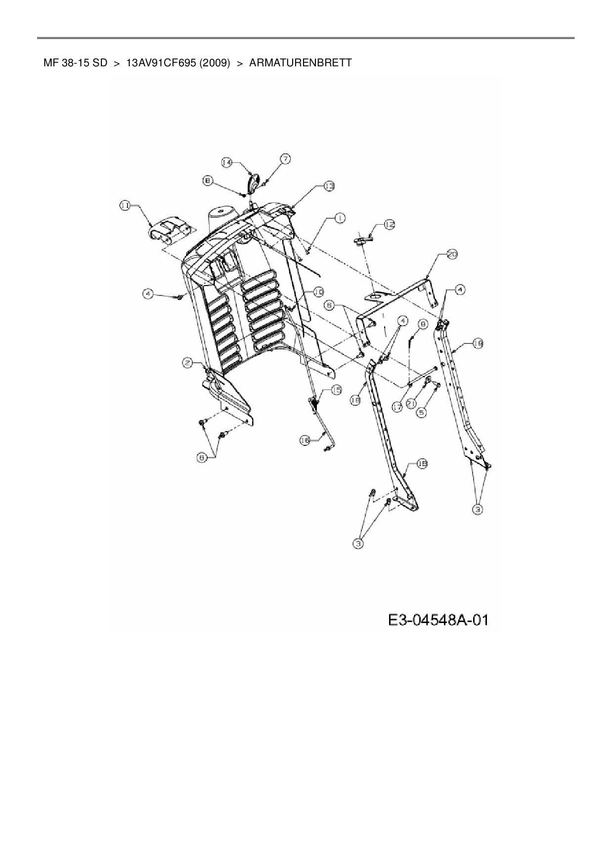 Ersatzteile für Rasentraktor Massey Ferguson MF 38-15 SD aus der Zeichnung Armaturenbrett: