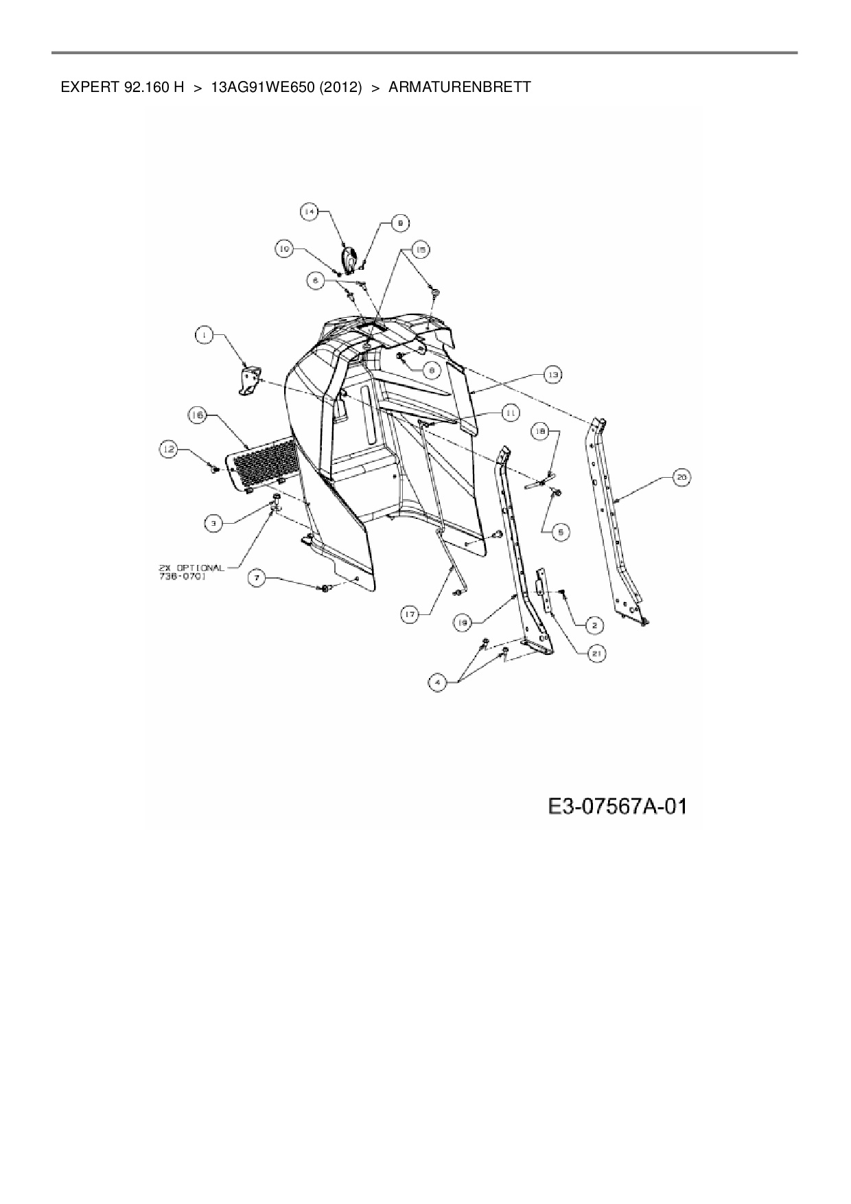 Ersatzteile für Rasentraktor Wolf-Garten Expert Expert 92.160 H aus der Zeichnung Armaturenbrett: