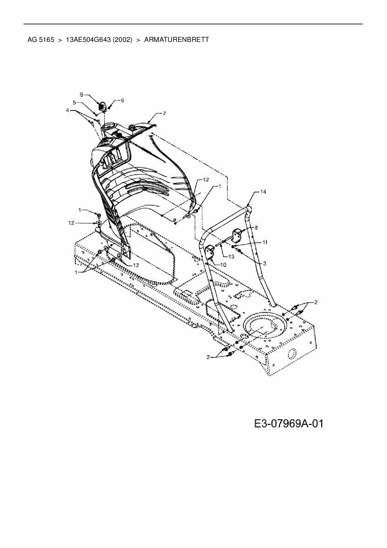 Ersatzteile für Rasentraktor Yard-Man AG 5165 aus der Zeichnung Armaturenbrett: