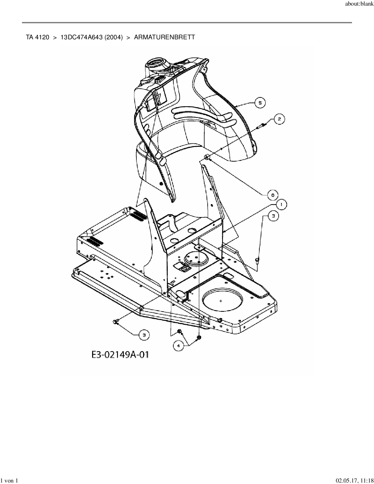 Ersatzteile für Rasentraktor Yard-Man TA 4120 aus der Zeichnung Armaturenbrett: