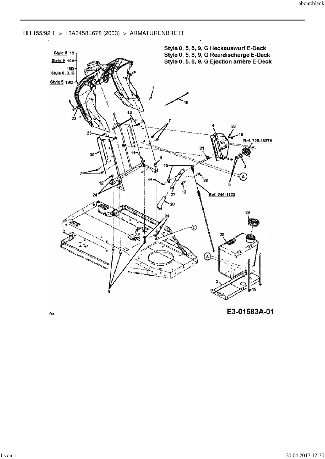 Download Ersatzteil-Zeichnung MTD RH 155/92 T Zeichnung Armaturenbrett (PDF-Format)
