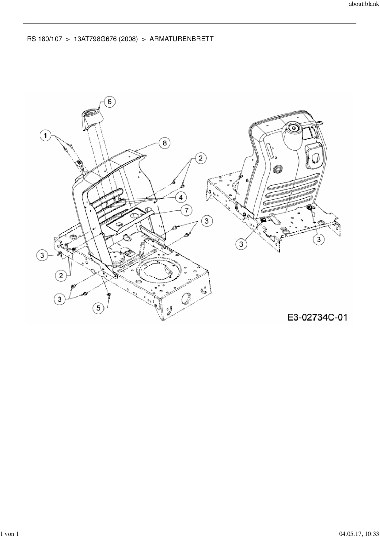 Ersatzteile für Rasentraktor MTD RS 180/107 aus der Zeichnung Armaturenbrett: