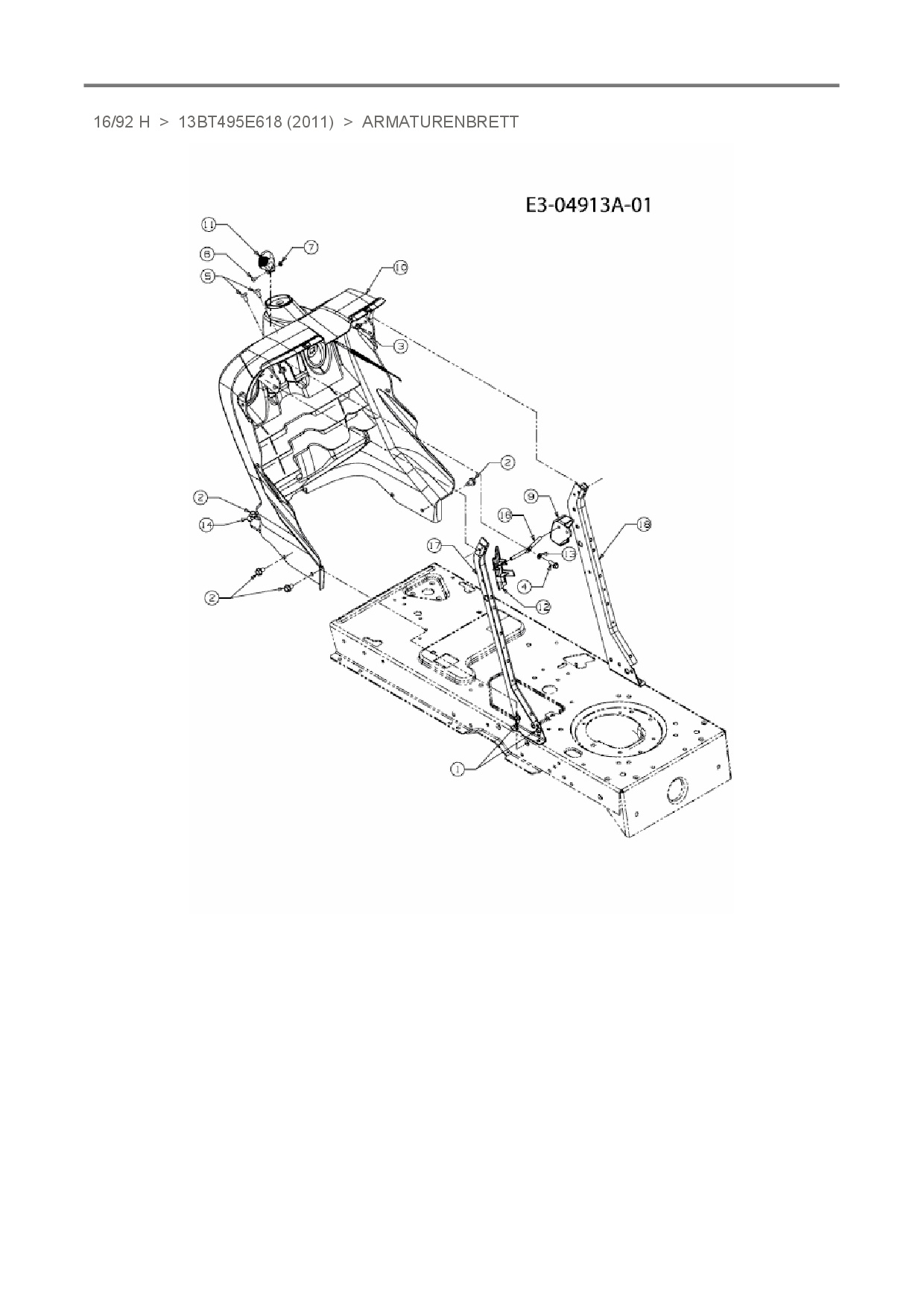 Ersatzteile für Rasentraktor Rasor 16/92 H aus der Zeichnung Armaturenbrett: