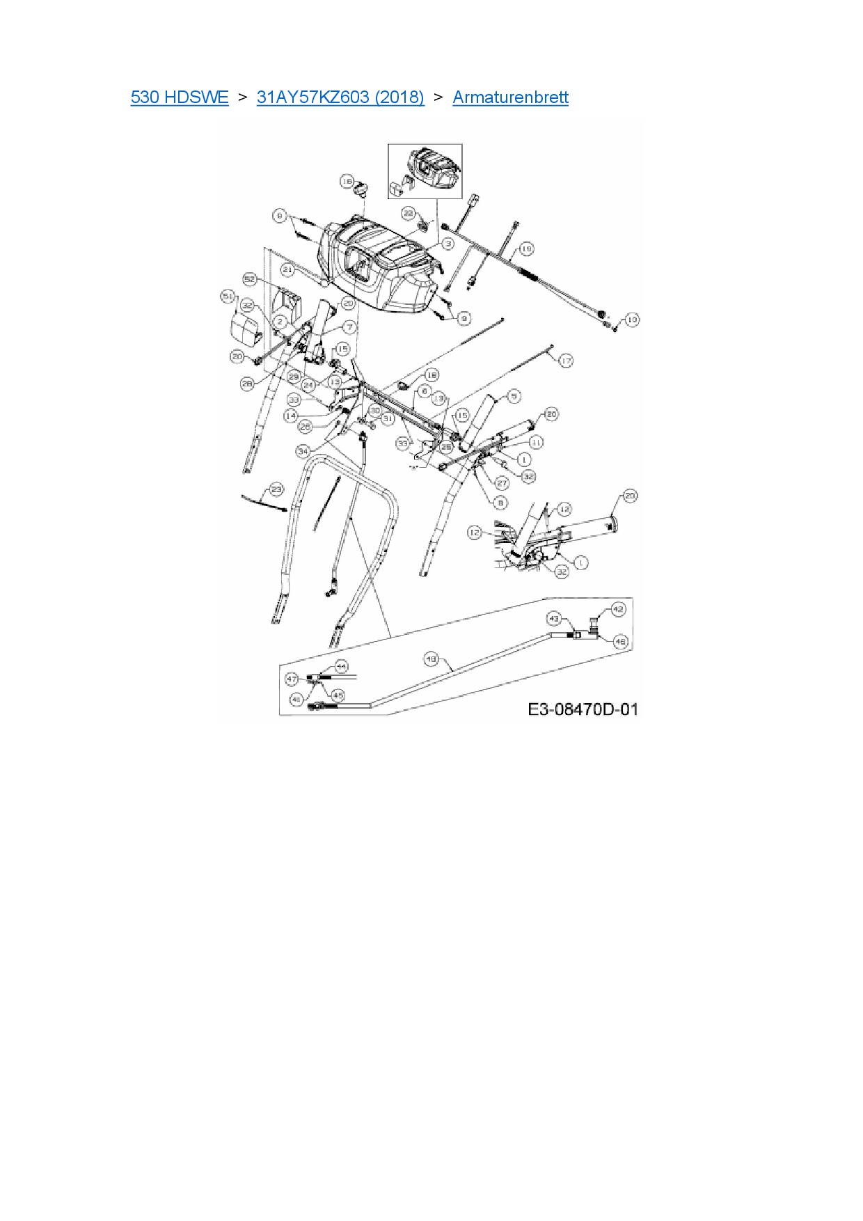 Download Ersatzteil-Zeichnung Cub Cadet 530 HDSWE Zeichnung Armaturenbrett (PDF-Format)