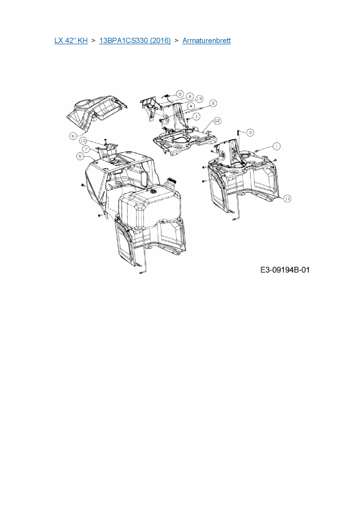Ersatzteile für Rasentraktor Cub Cadet LX 42" KH aus der Zeichnung Armaturenbrett: