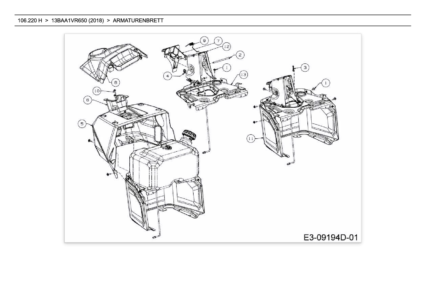 Ersatzteile für Rasentraktor Wolf-Garten Expert 106.220 H aus der Zeichnung Armaturenbrett: