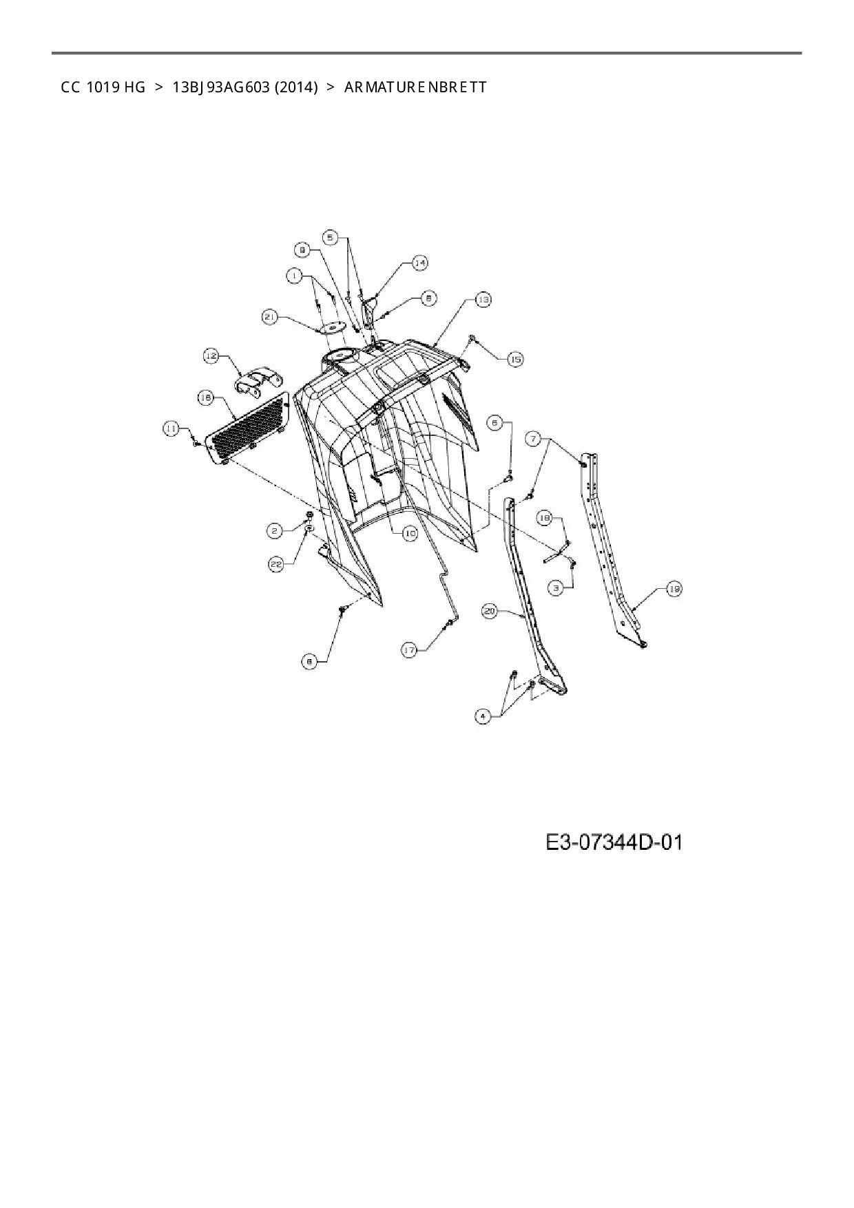 Ersatzteile für Rasentraktor Cub Cadet CC 1019 HG aus der Zeichnung Armaturenbrett: