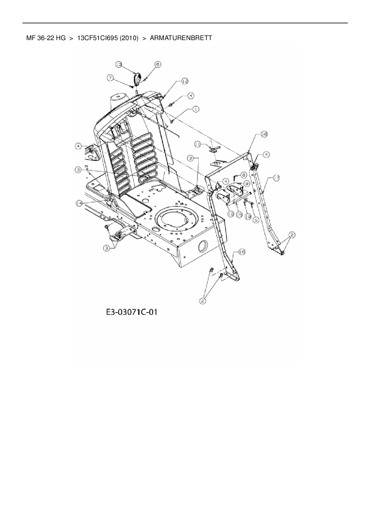 Ersatzteile für Rasentraktor Massey Ferguson MF 36-22 HG aus der Zeichnung Armaturenbrett: