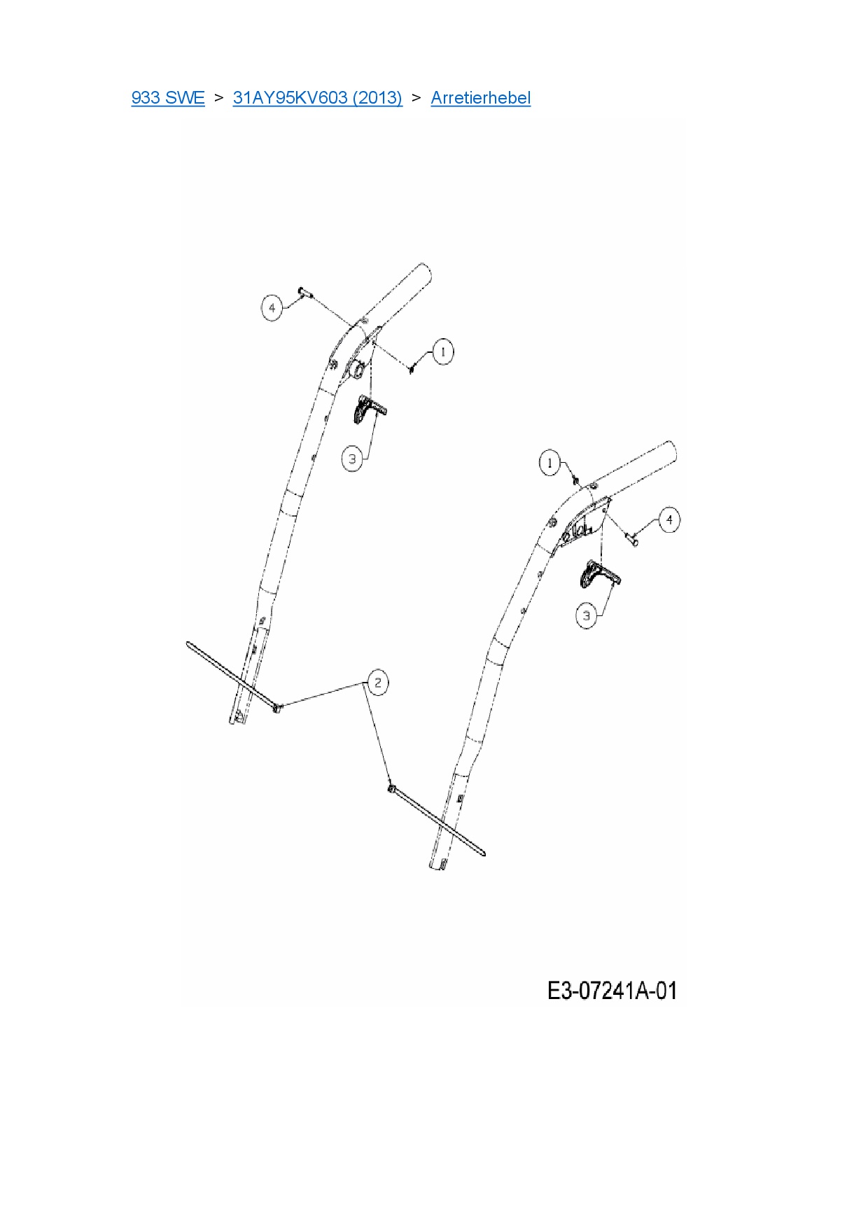 Ersatzteile für Schneefräse Cub Cadet 933 SWE aus der Zeichnung Arretierhebel: