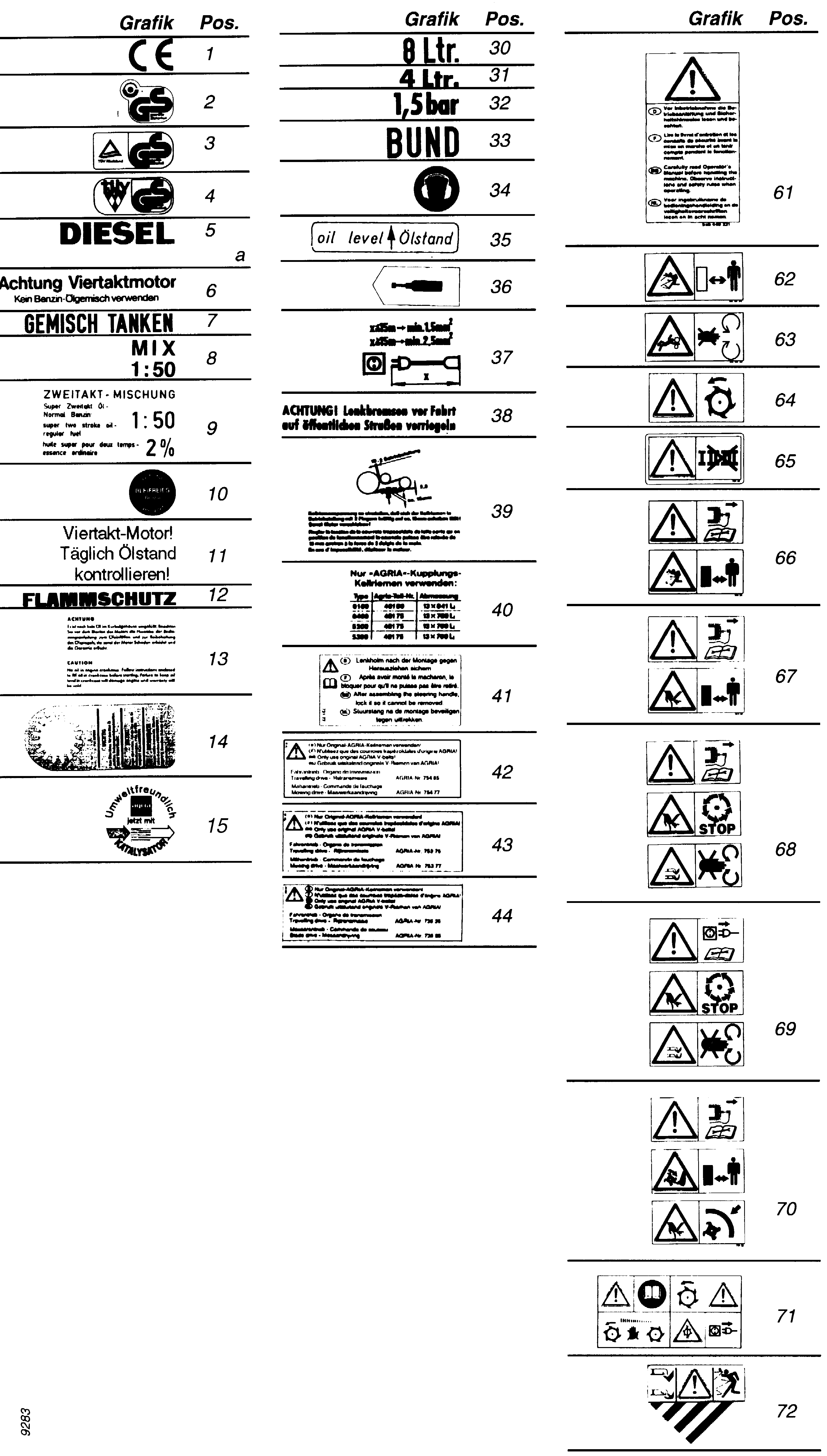 Ersatzteile für Agria # Einachser # agria 3500 # Art-Nr 3500031 | agria 3500 STARR O RAD/HA 4T3,2KW # Werkzeug, Aufkleber, Schmierstoffe, Lacke # Aufkleber: Hinweis- und Warnzeichen