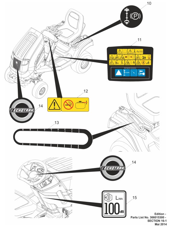 Zeichnung von ECHO-Motorgeräte Rasentraktoren A-Serie A-418KAWA-4WD Bj. 2016 Aufkleber II:
