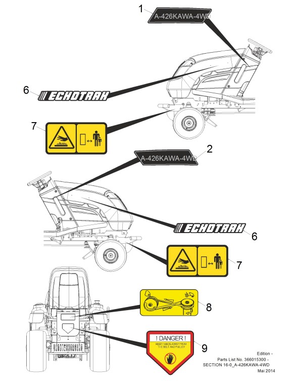 Zeichnung von ECHO-Motorgeräte Rasentraktoren A-Serie A-426KAWA-4WD - 2016-06 A-426KAWA-4WD ab Juni 2016 Aufkleber I: