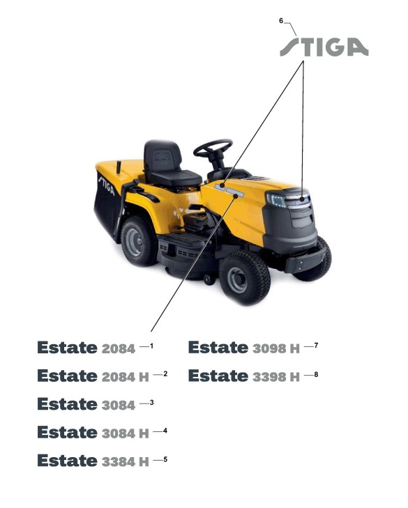 Zeichnungen von Stiga Aufsitzmäher ESTATE 3084 H mit Geräte Nr. 2T2110281/14 ab Baujahr 2017