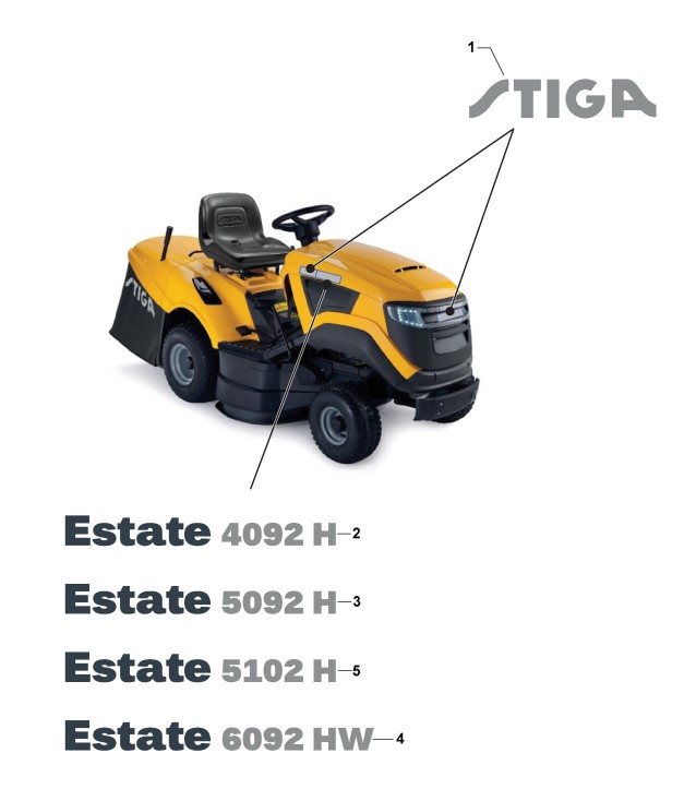 Zeichnungen von Stiga Aufsitzmäher ESTATE 5092 H mit Geräte Nr. 2T0440281/16 ab Baujahr 2017