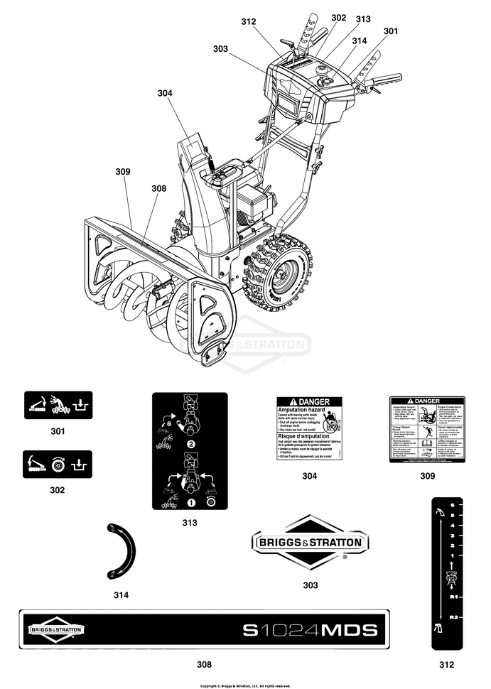 Hier finden Sie alle Ersatzteile von Murray Schneefräse 1697157-00 - S1024MDS, 9.5 Gross TP 24" Dual Stage Snowthrower (2019) der Zeichnungsgruppe Aufkleber: