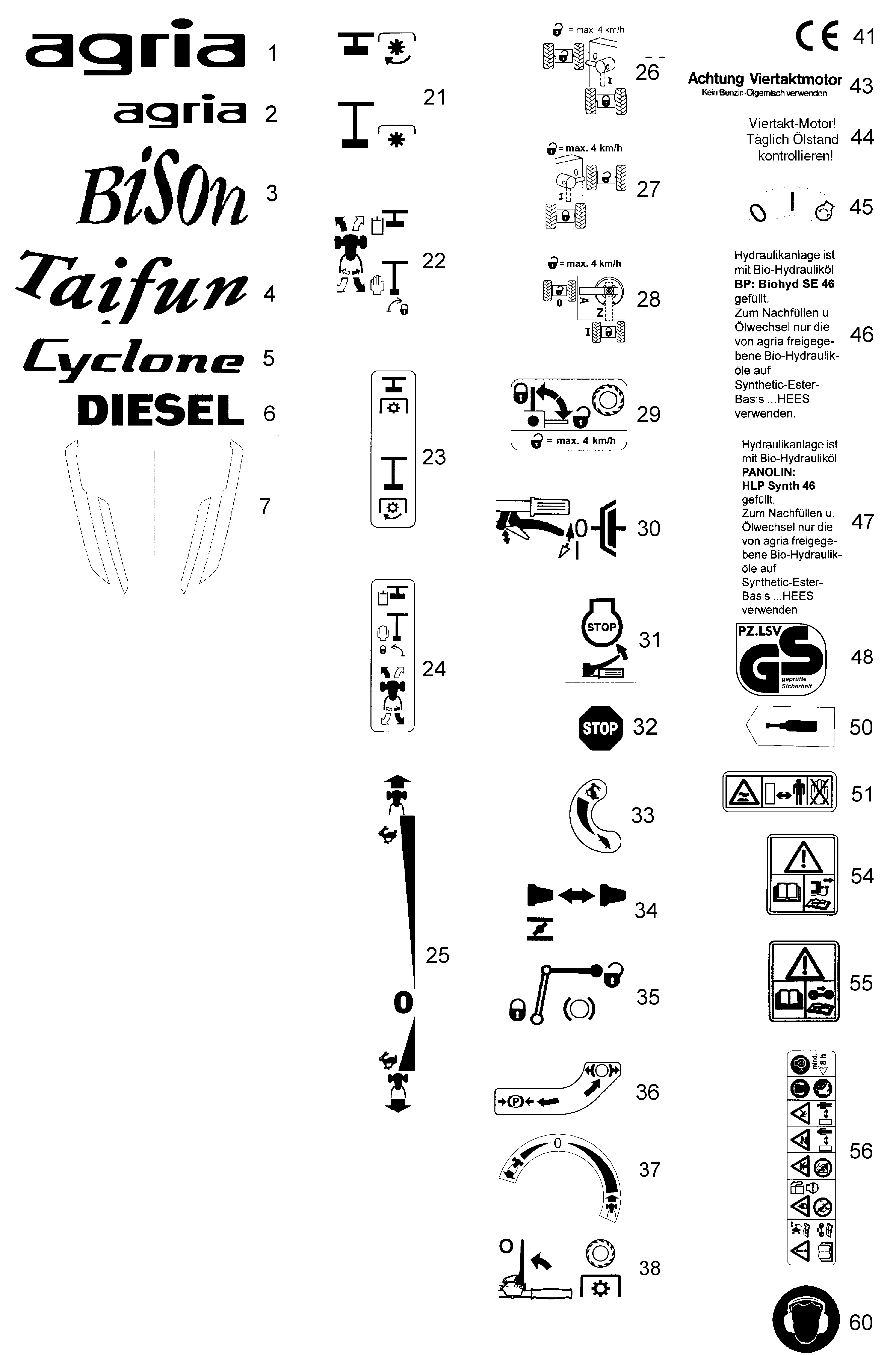Folgende Ersatzteile für Agria # Geräteträger # agria 5900 # Art-Nr 5900121 | agria 5900 Bison # Werkzeug, Aufkleber, Schmierstoffe, Lacke # Aufkleber können Sie hier bestellen: