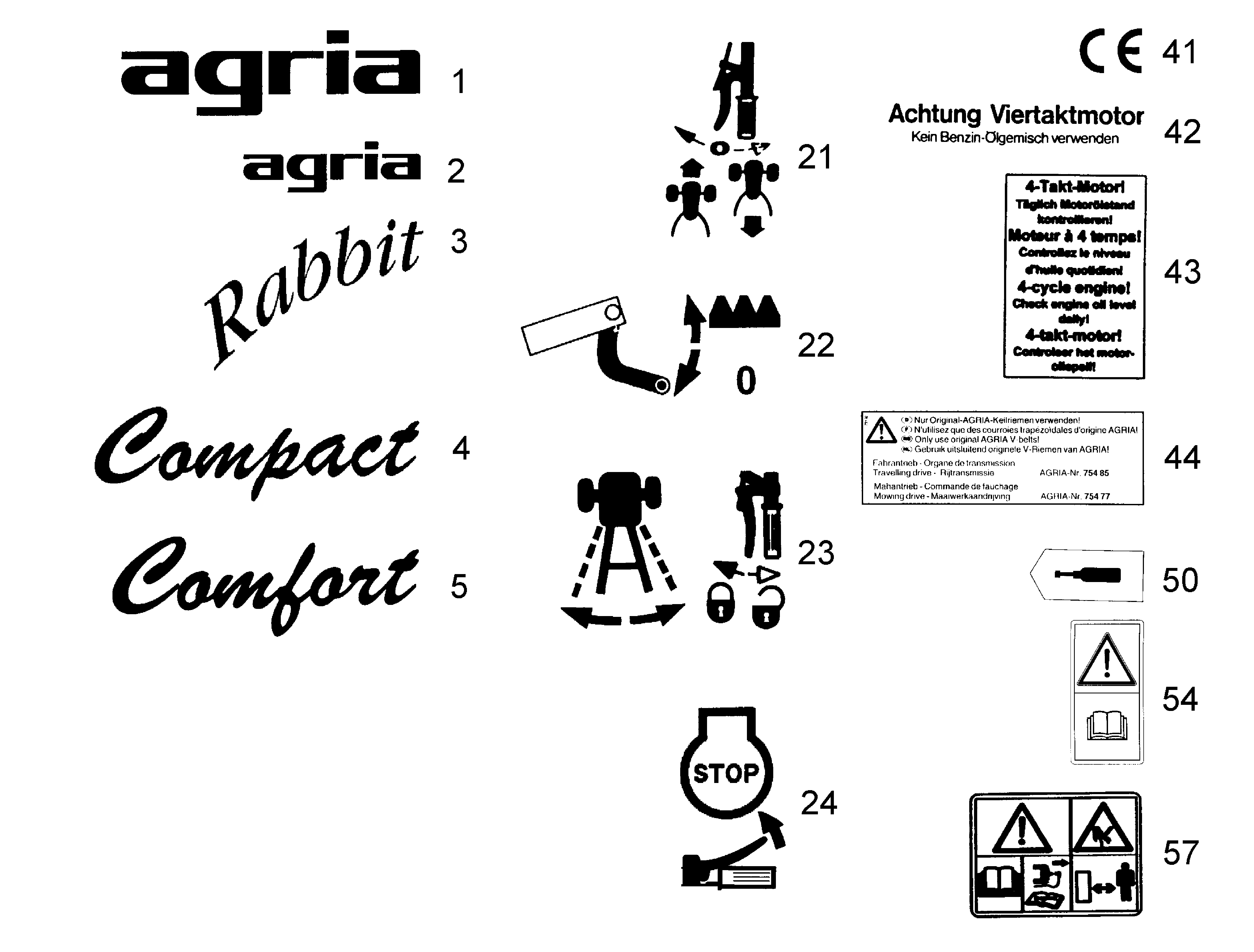 Folgende Ersatzteile für Agria # Balkenmäher # agria 5100 # Art-Nr 5100321 | agria 5100 Rabbit # Werkzeug, Aufkleber, Schmierstoffe, Lacke # Aufkleber können Sie hier bestellen: