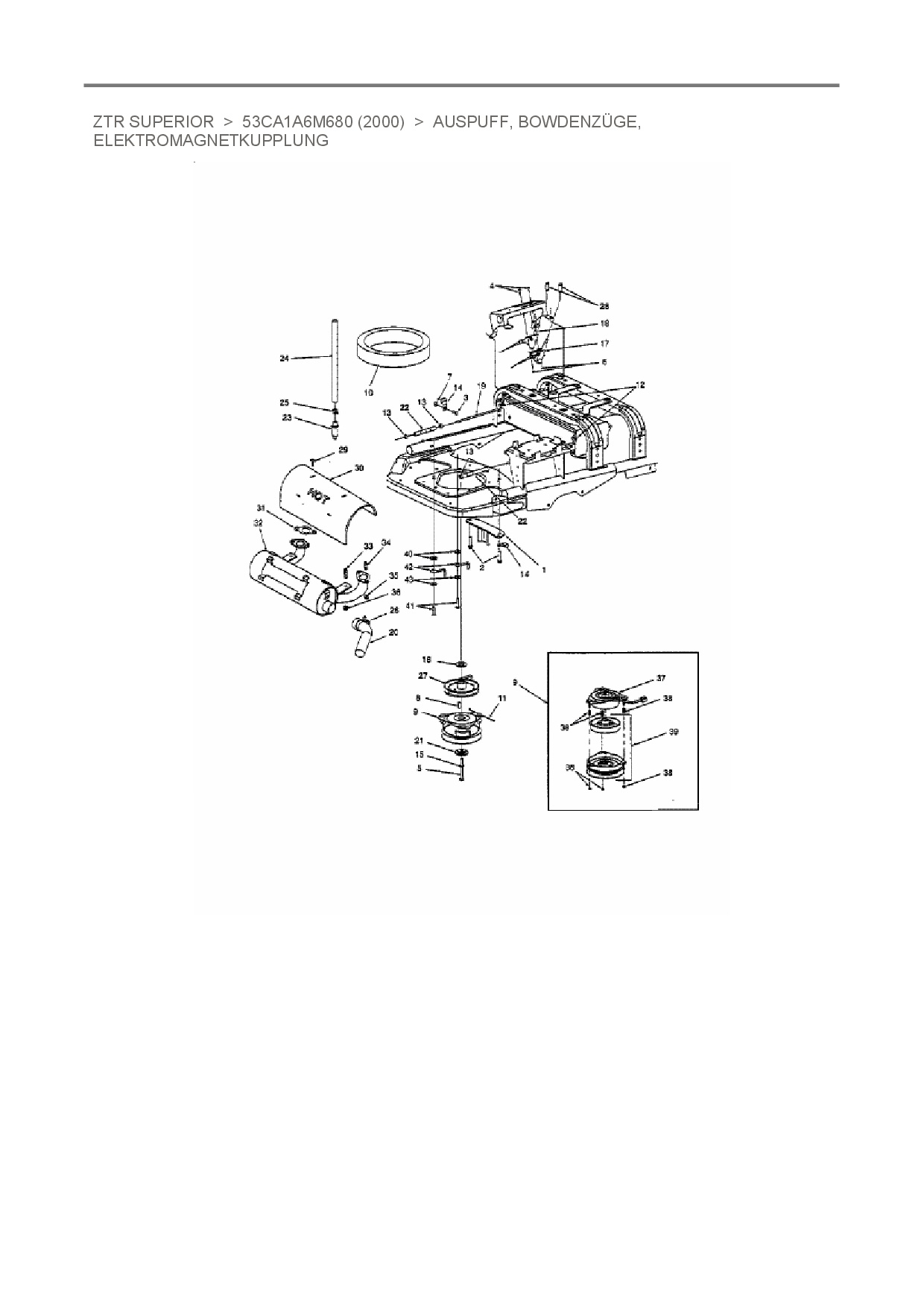 Ersatzteile für Zero Turn White ZTR Superior aus der Zeichnung Auspuff, Bowdenzüge, Elektromagnetkupplung: