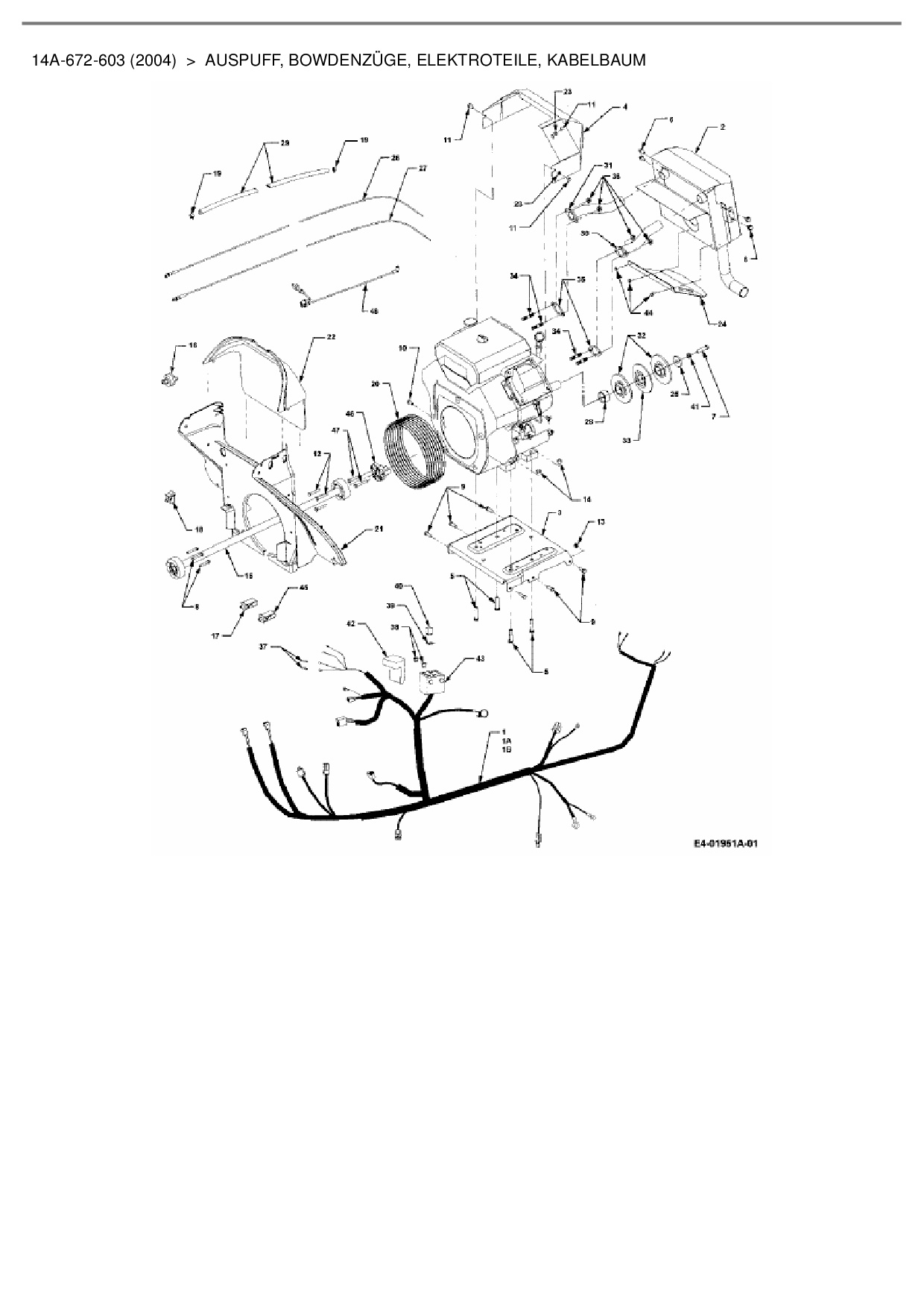 Ersatzteile für Gartentraktor Cub Cadet HDS 3235 aus der Zeichnung Auspuff, Bowdenzüge, Elektroteile, Kabelbaum: