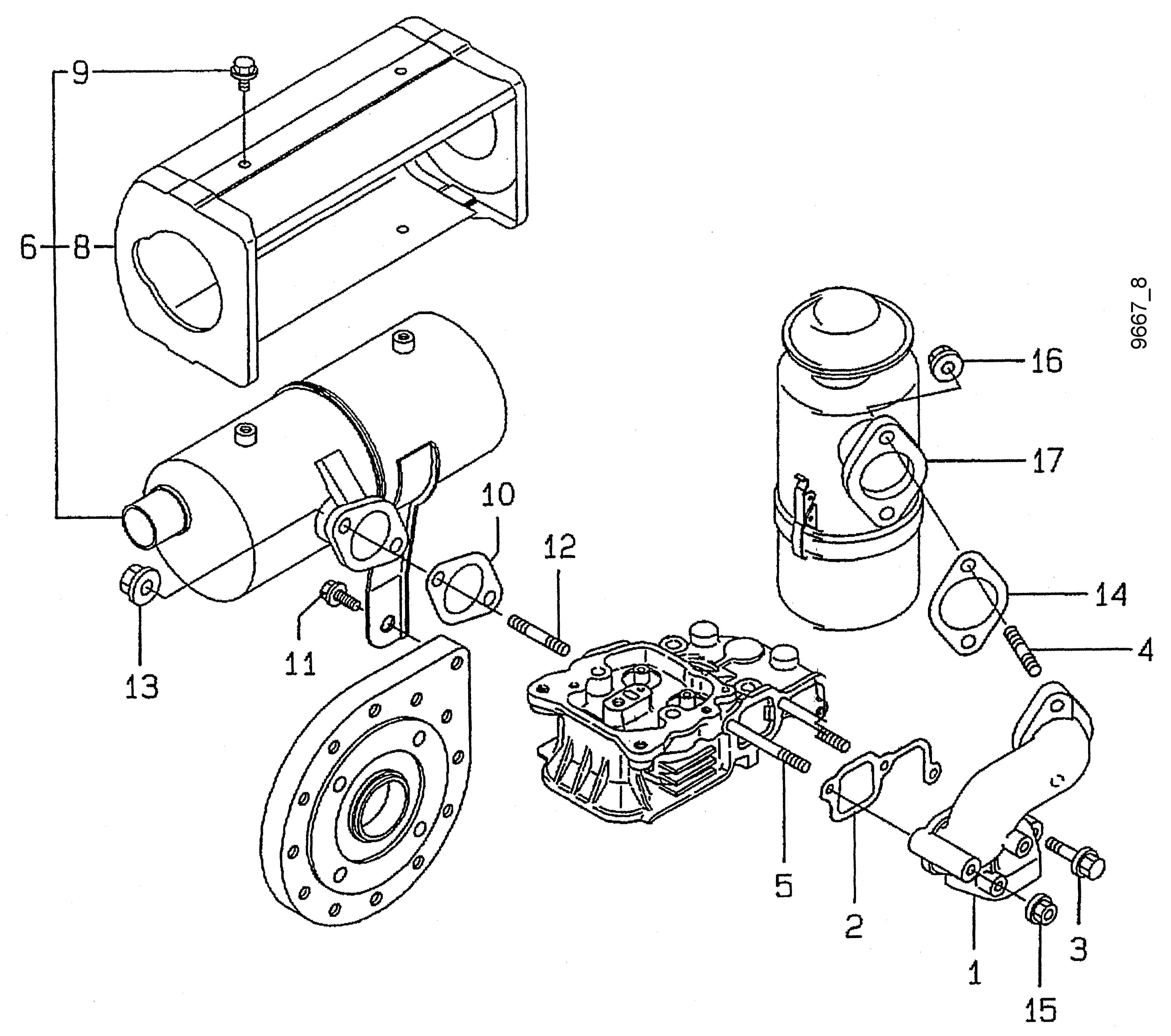 Ersatzteile für Agria # Motore # Yanmar # Art-Nr 0015048 | Yanmar L48AE # Motor Einzelteile # Auspuff, Luftfilter | Yanmar L48AE