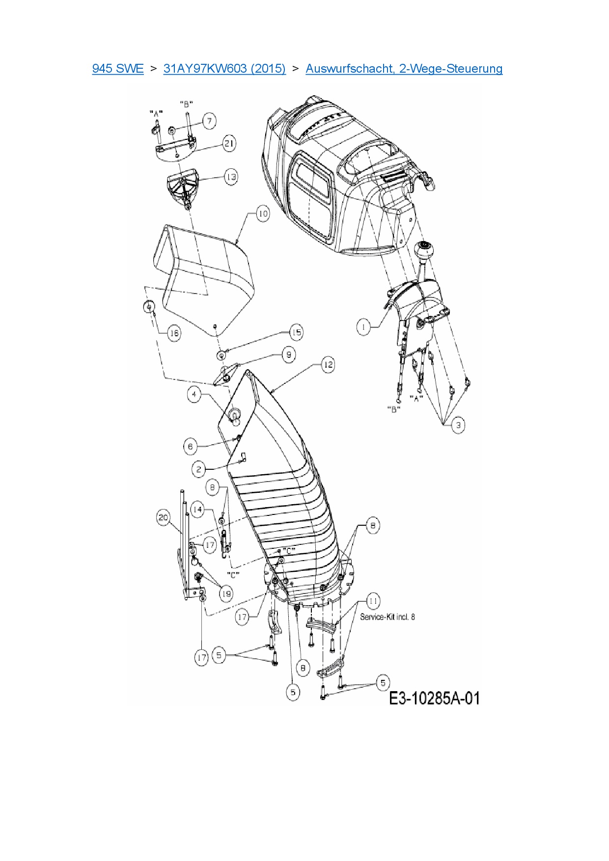 Download Ersatzteil-Zeichnung Cub Cadet 945 SWE Zeichnung Auswurfschacht, 2-Wege-Steuerung (1) (PDF-Format)
