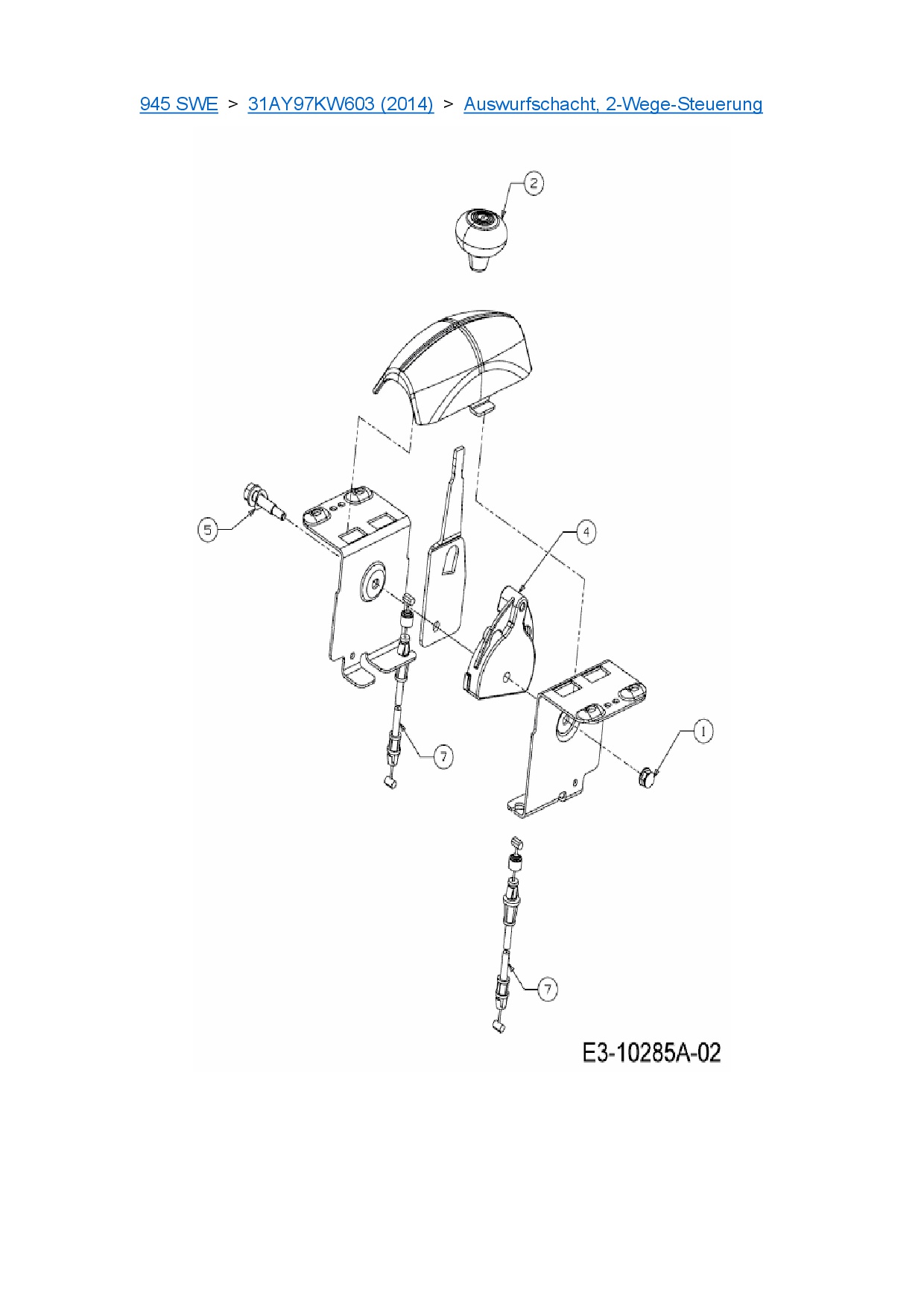 Download Ersatzteil-Zeichnung Cub Cadet 945 SWE Zeichnung Auswurfschacht, 2-Wege-Steuerung (2) (PDF-Format)