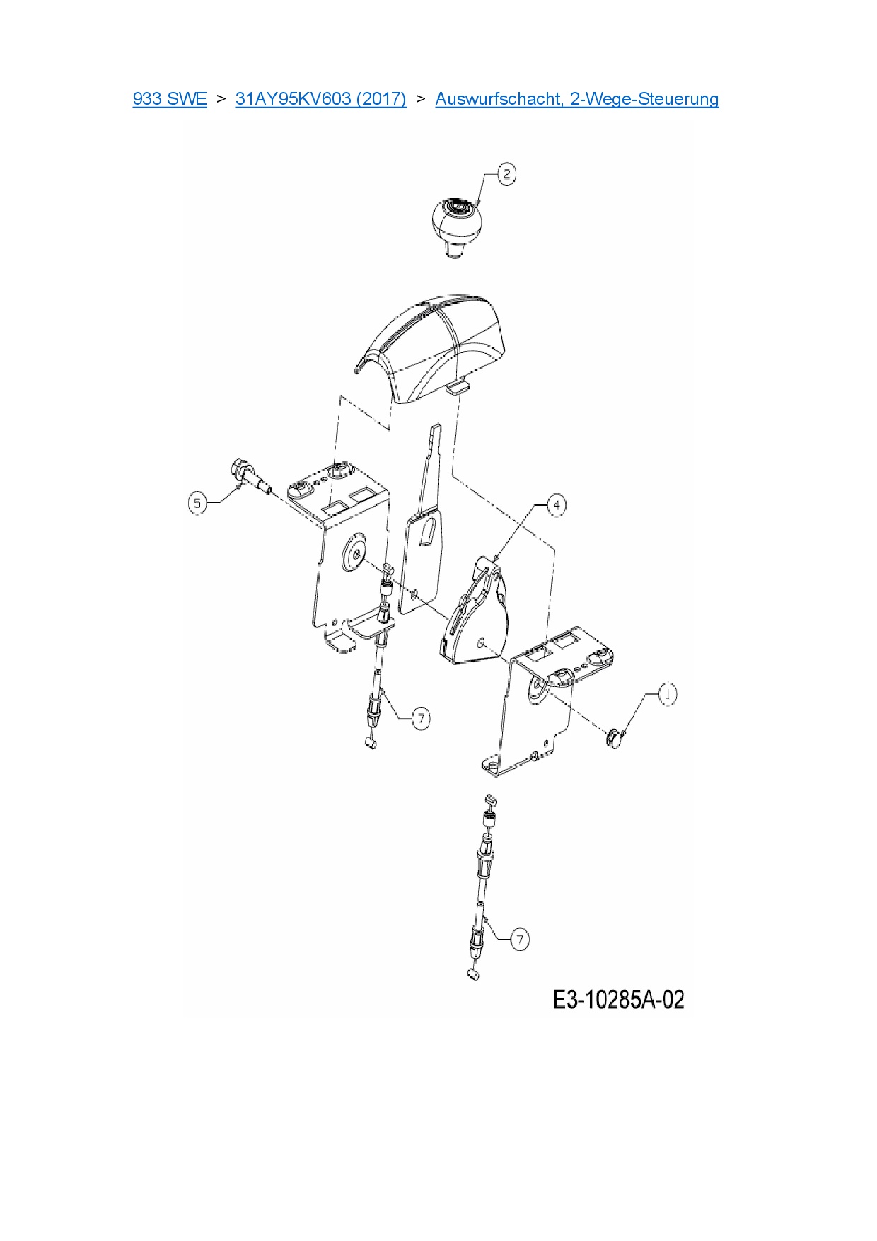 Ersatzteile für Schneefräse Cub Cadet 933 SWE aus der Zeichnung Auswurfschacht, 2-Wege-Steuerung (2):